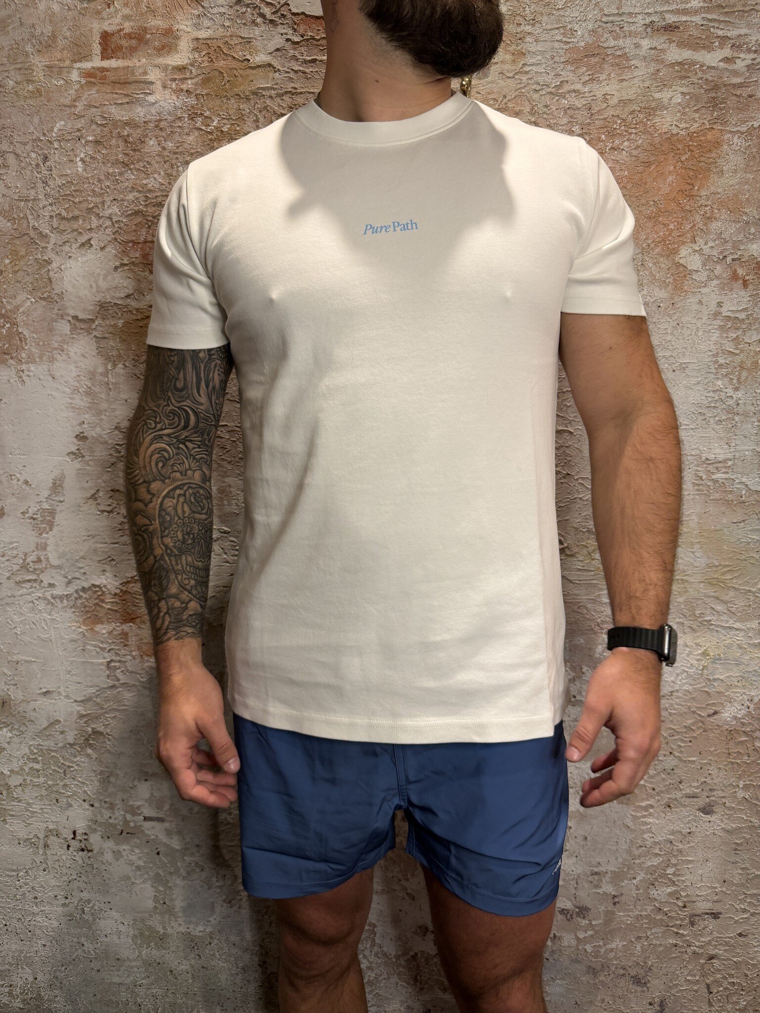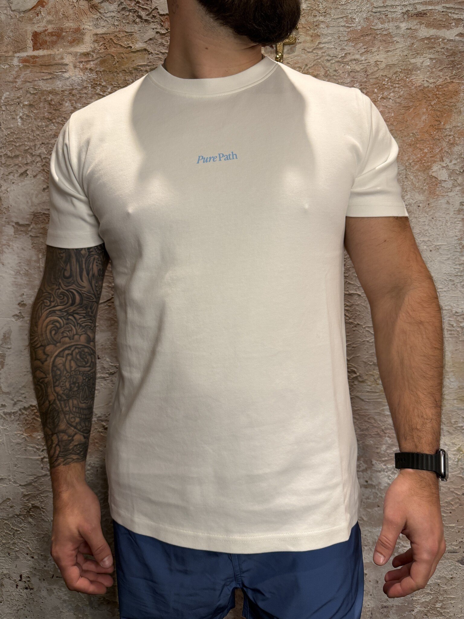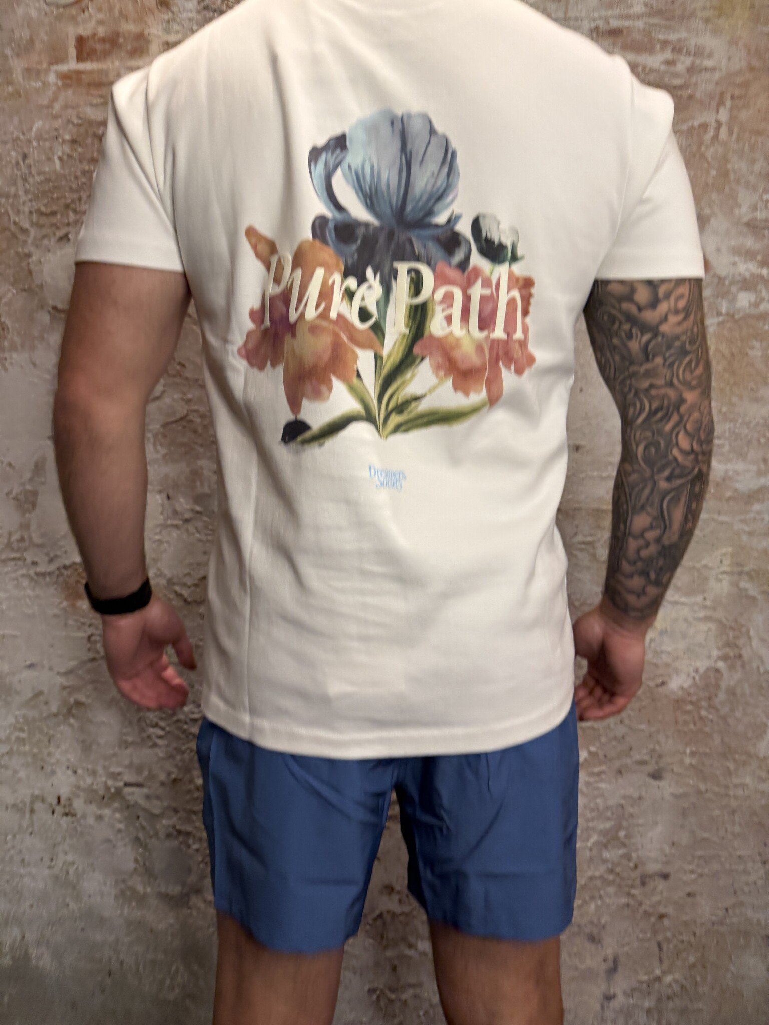 Pure Path Trio of Flowers T-shirt White met subtiel logo op de borst en grote bloemenprint op de rug. Comfortabele pasvorm en zachte katoenkwaliteit. Tijdloze witte kleur, perfect te combineren met shorts of jeans. Stijlvol en casual voor zomerse outfits.