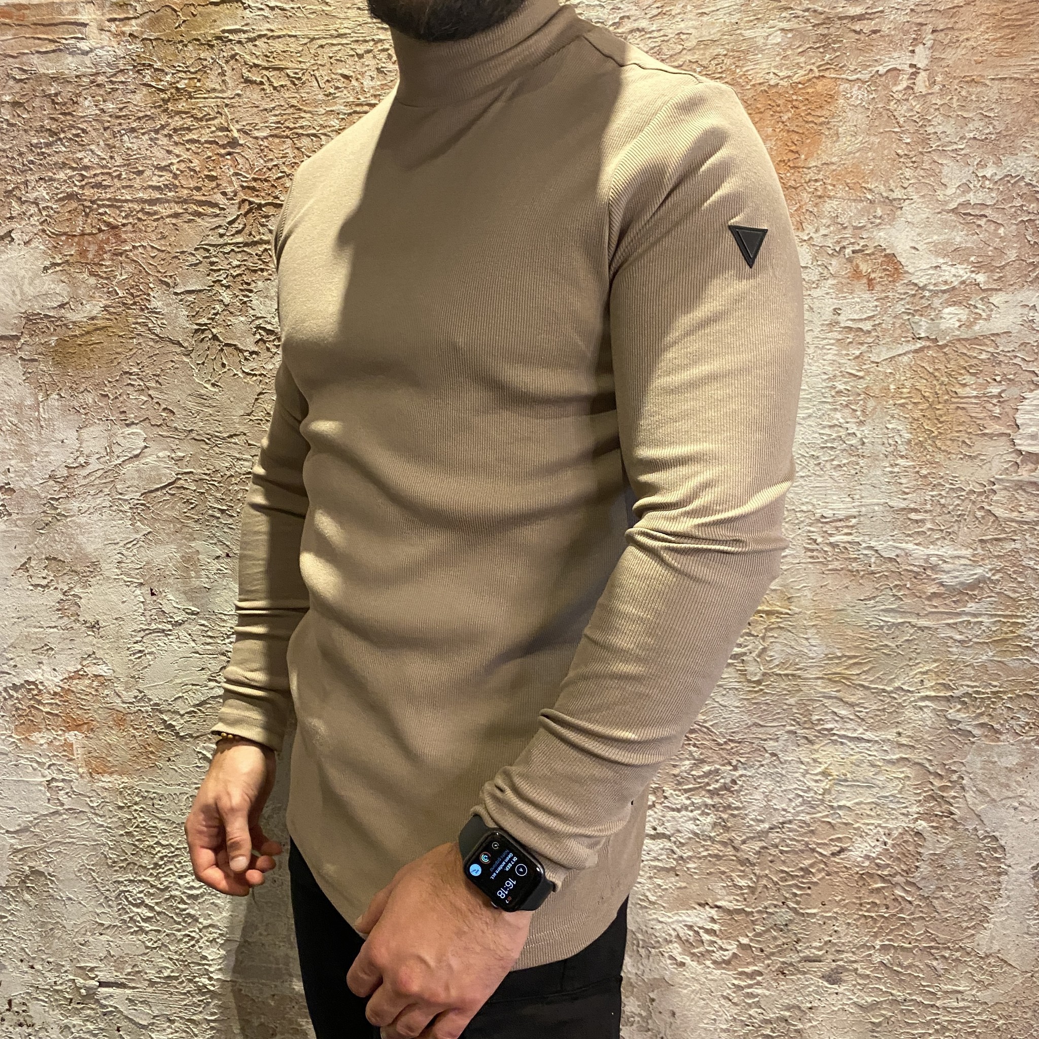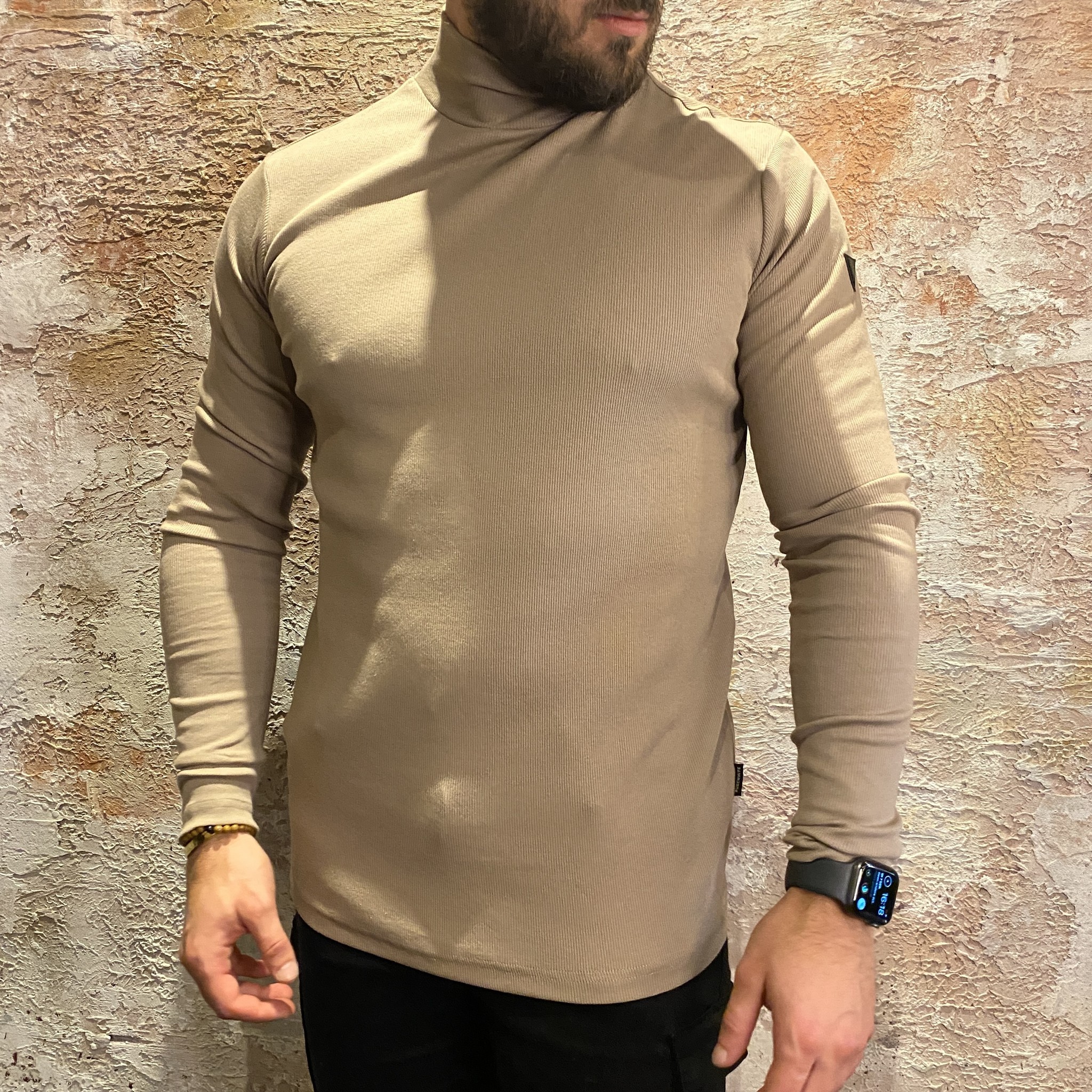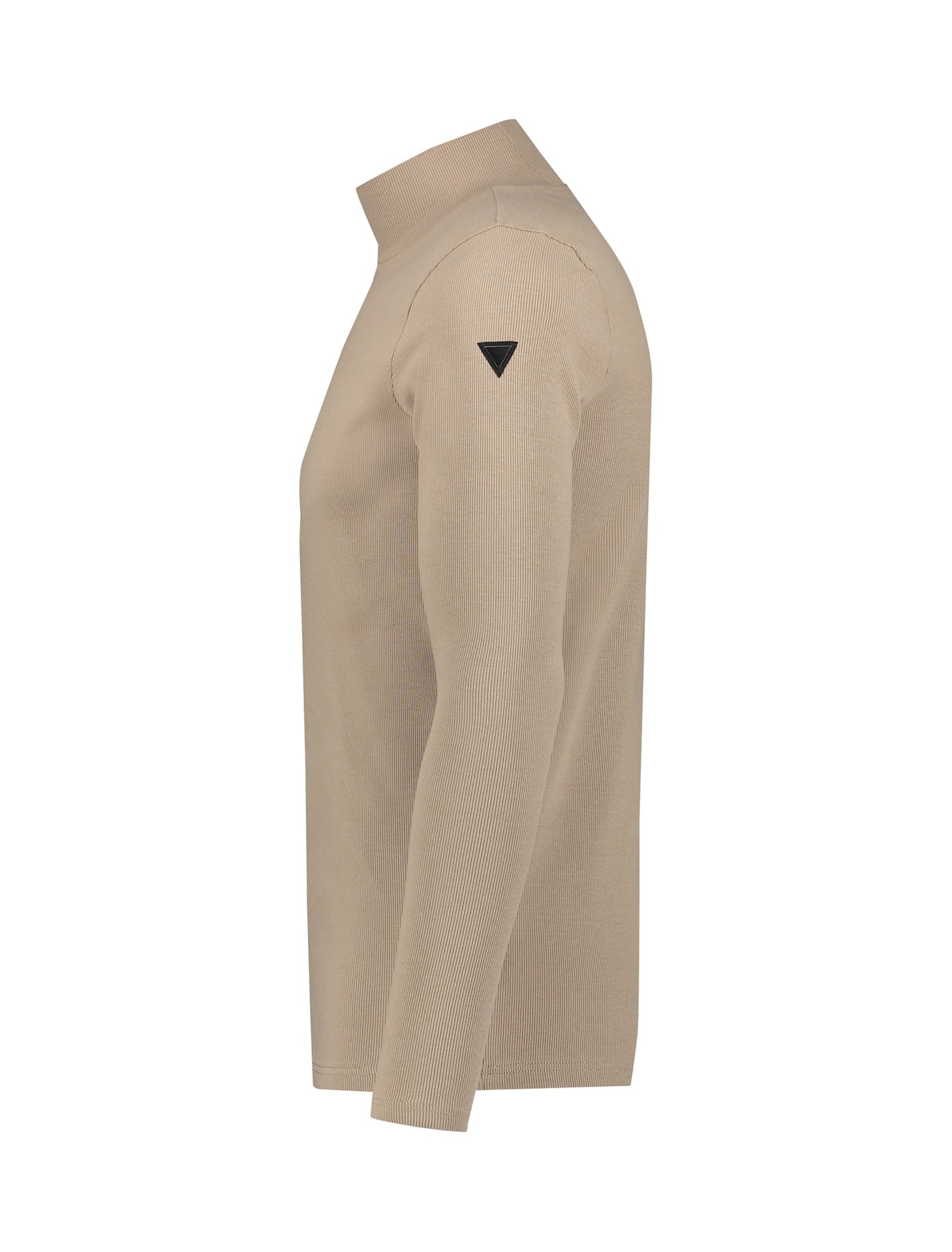 Longsleeve van Purewhite in de kleur taupe met een opstaand kraagje.