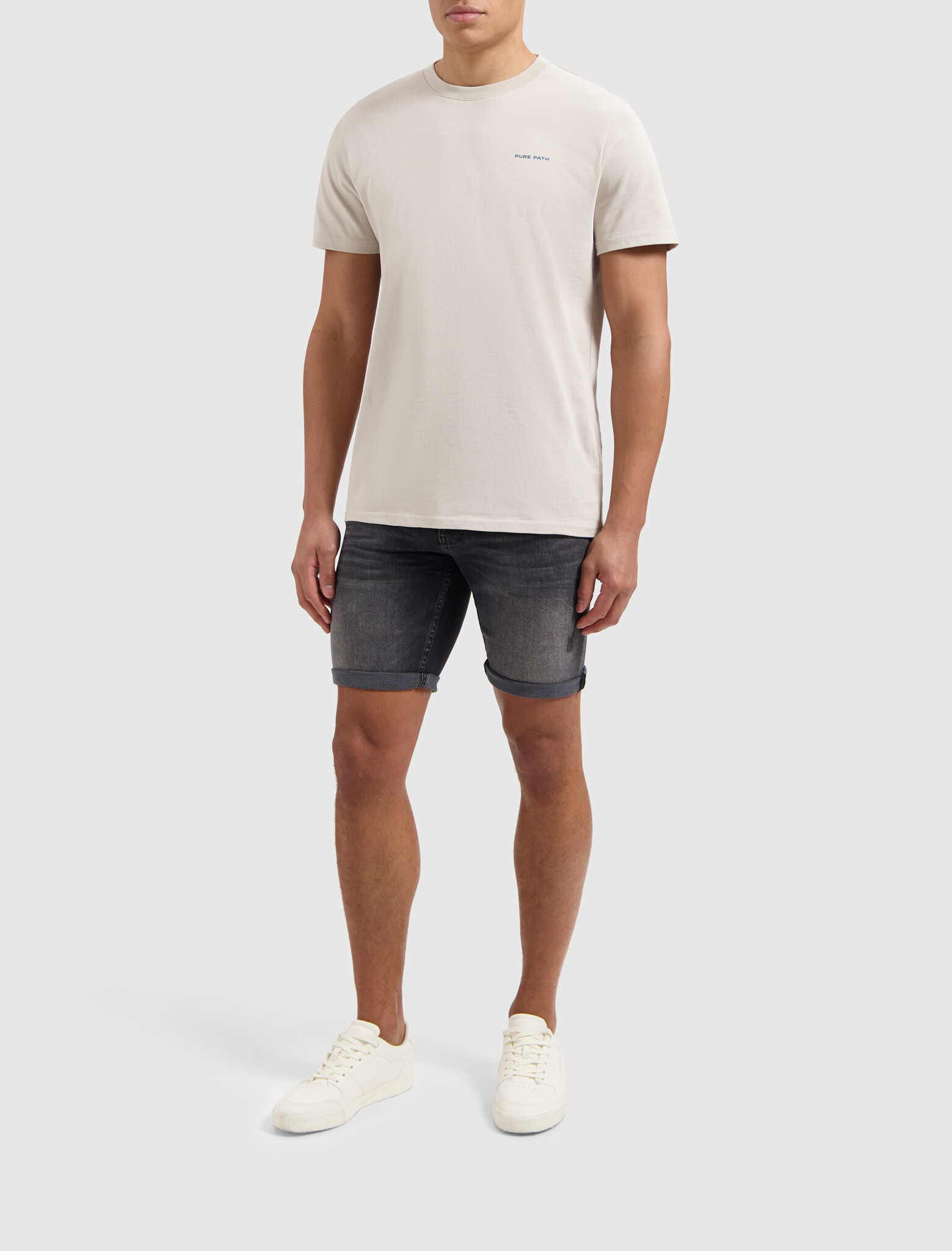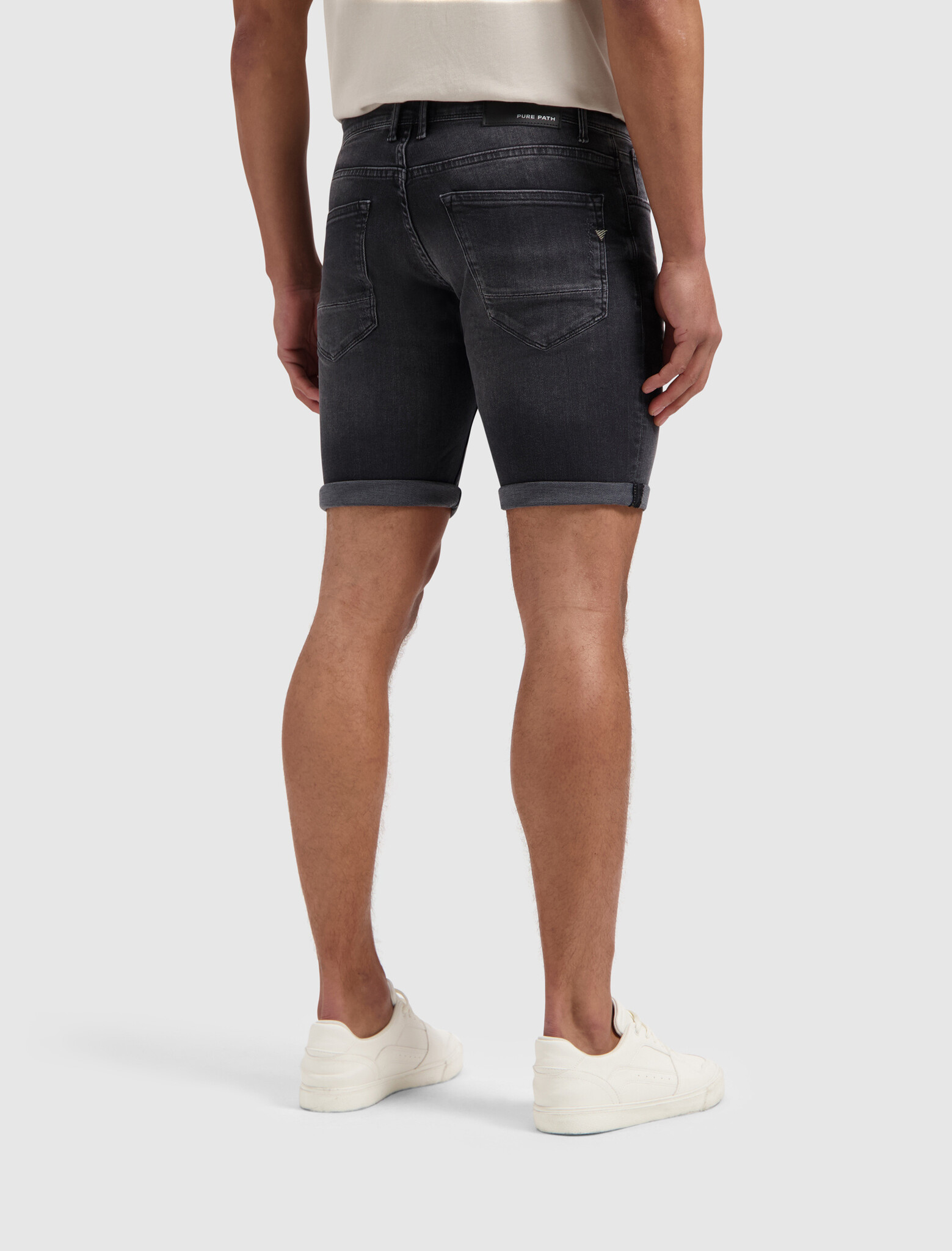 Pure Path Short The Steve Dark Grey W1476 is een slim fit denim short in donkergrijs met subtiele wassing en lichte distressed details. Voorzien van vijf zakken en een opgerolde zoom. Gemaakt van stretchstof voor ultiem comfort en een moderne look.