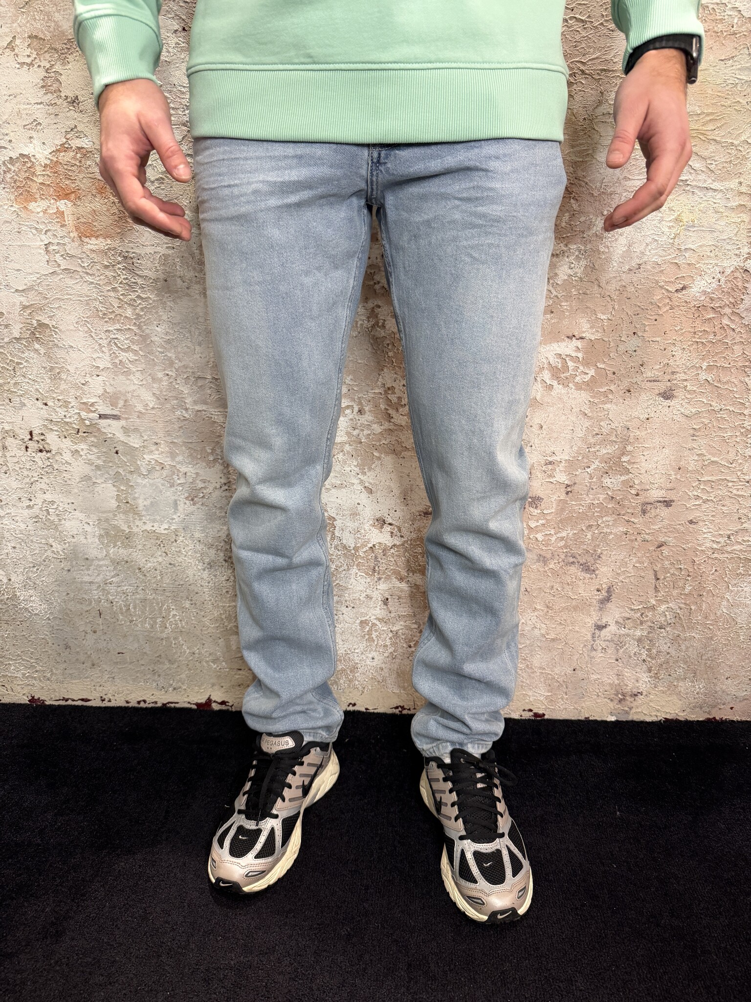 Moderne Pure Path heren jeans in lichtblauwe wassing. De Ryan jeans heeft een comfortabele slim fit, zachte stretch denim en een tijdloze uitstraling. Perfecte light blue denim jeans voor heren die makkelijk te combineren is met T-shirtsof sweaters.