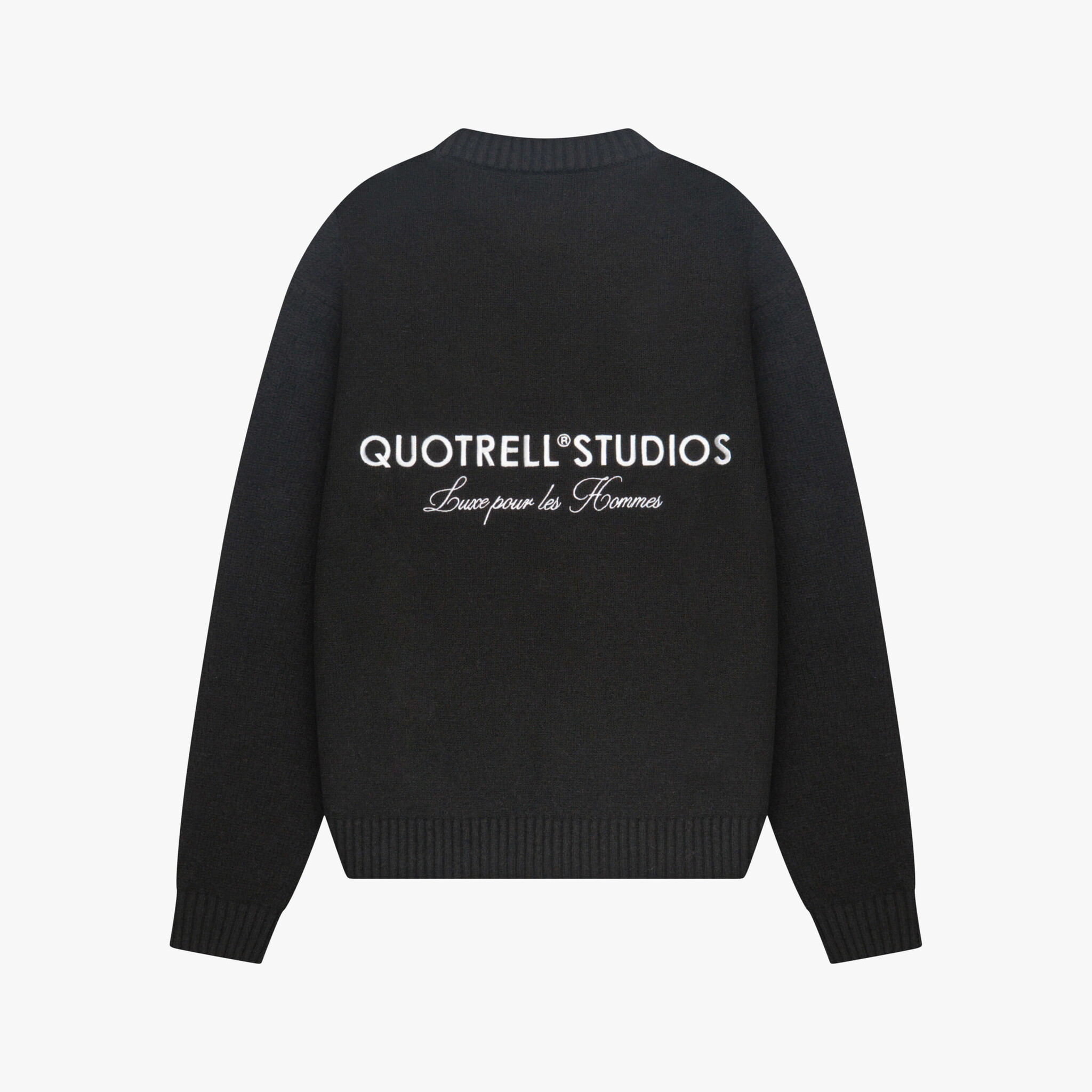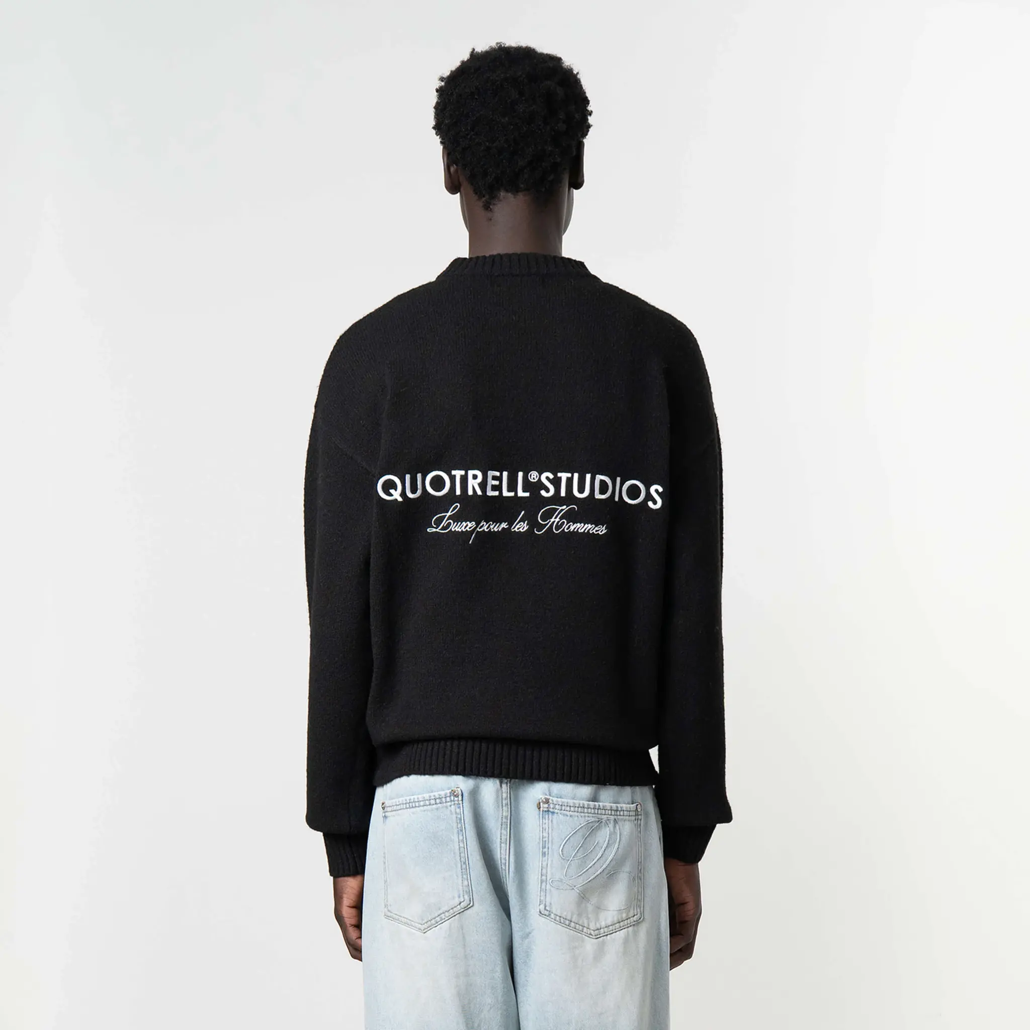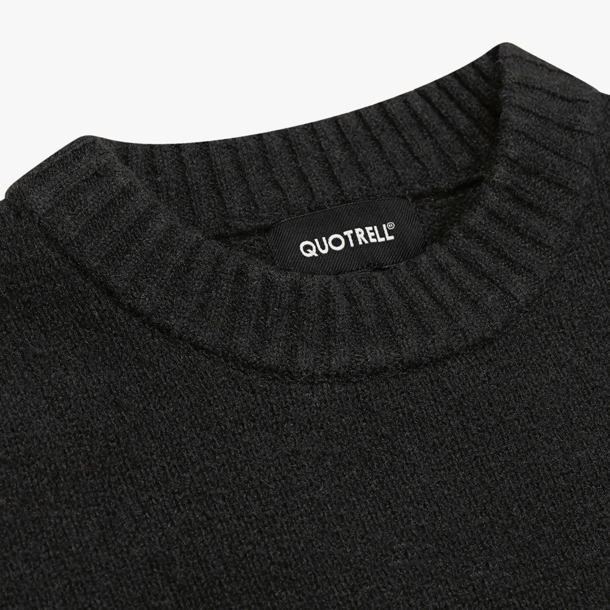 De Quotrell Aurora Knitted Sweater Black is een zachte, gebreide trui met een comfortabele fit. Voorzien van subtiel Quotrell Studios-logo op de borst en een opvallende backprint. Gemaakt van hoogwaardig materiaal voor warmte en stijl.