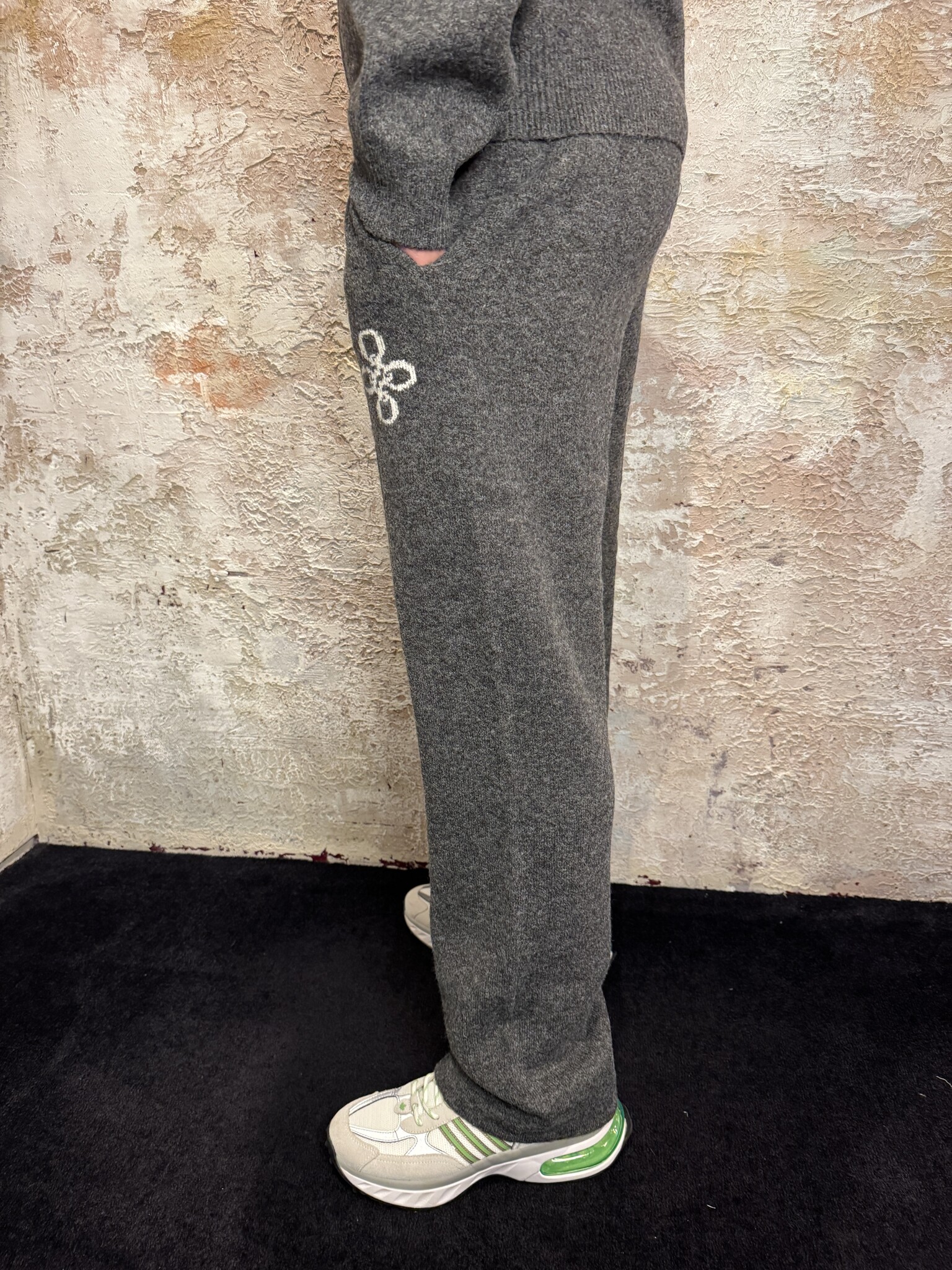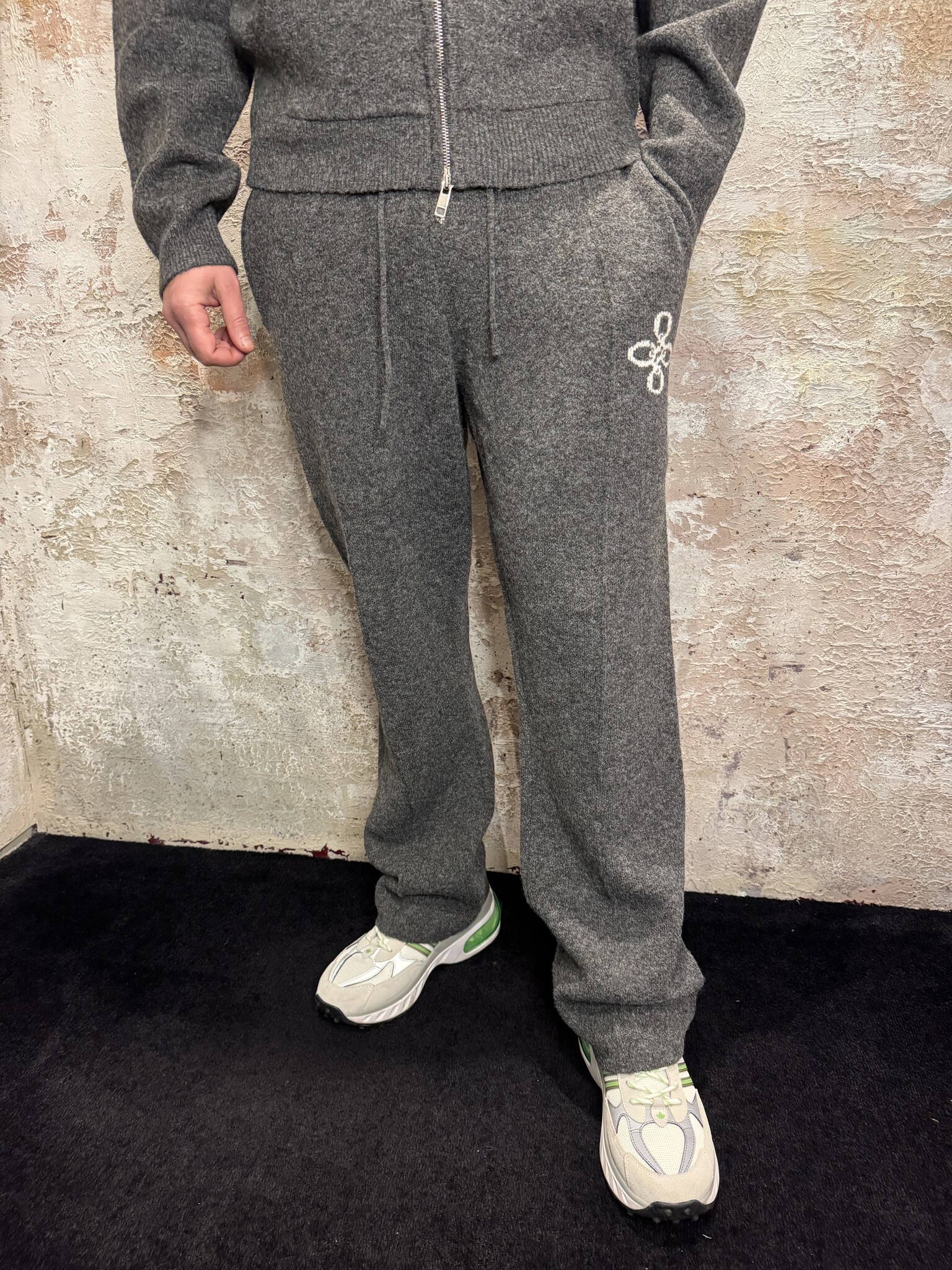 Quotrell Calvin Knitted Pants Grey is een comfortabele gebreide broek met rechte pasvorm en elastische taille. Gemaakt van zachte wolmix met geborduurd logo op het been. Perfect te combineren met de Calvin Knitted Hoodie.