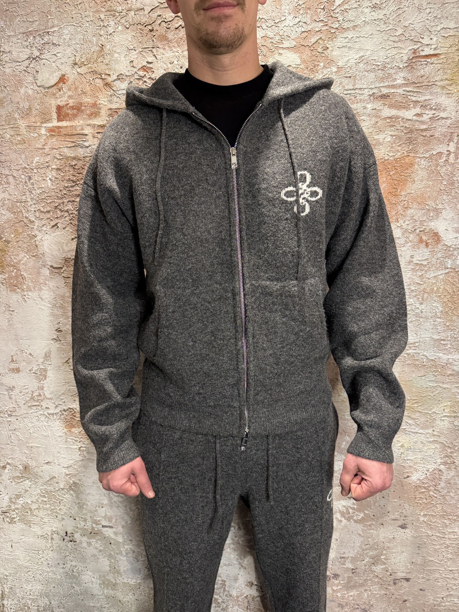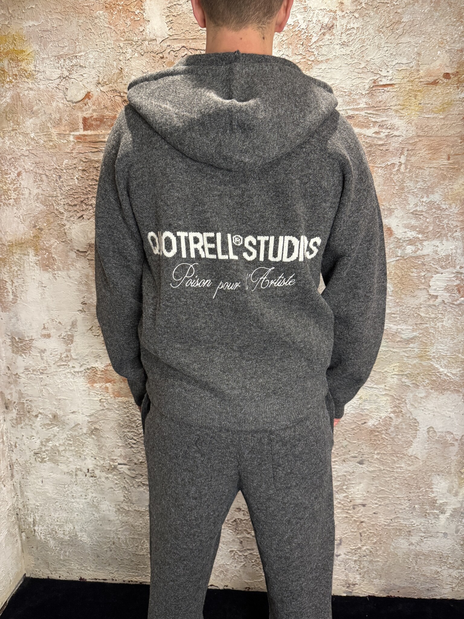 Quotrell Calvin Knitted Zip Hoodie Grey is een luxe gebreide hoodie met rits, zachte wolmix en subtiel logo op de borst. Achterzijde met “Quotrell Studios” borduursel. Combineer met de Calvin Knitted Pants voor een complete look.