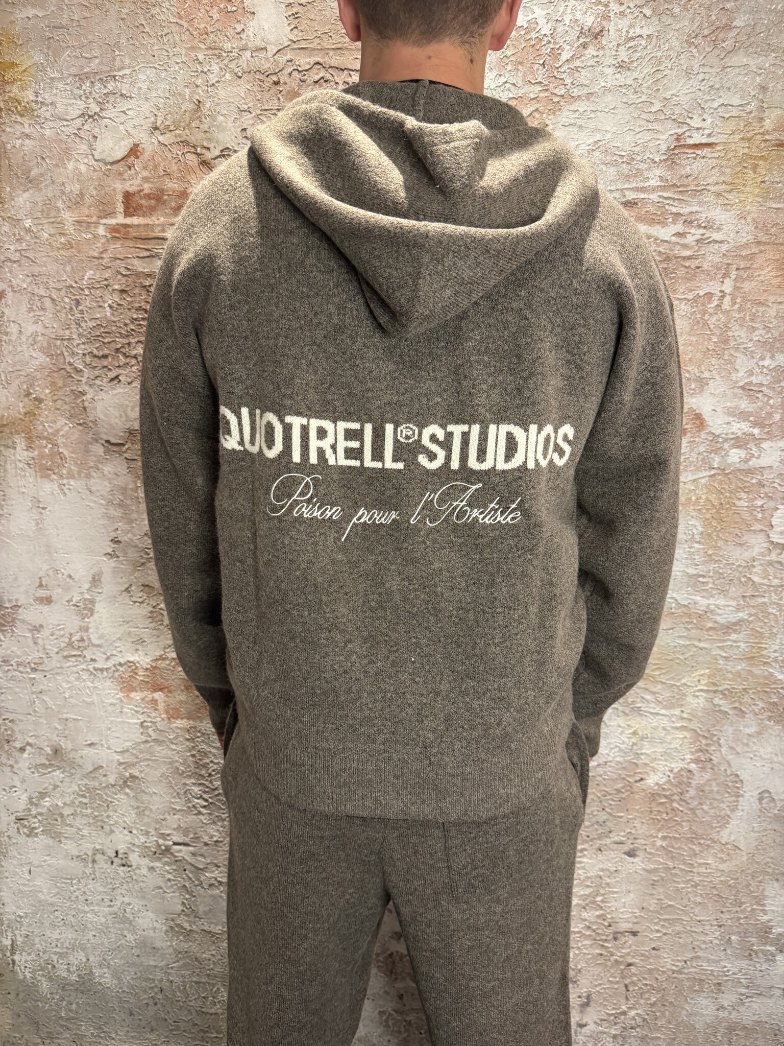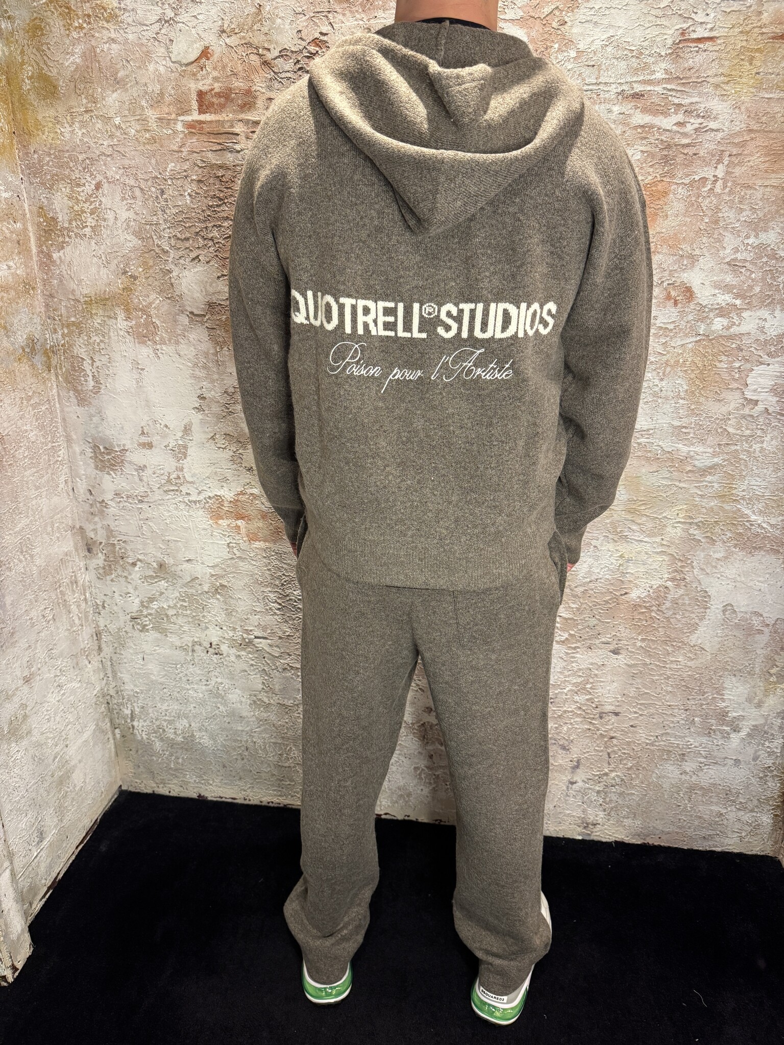 Quotrell Calvin Knitted Zip Hoodie Taupe is een luxe gebreide hoodie met rits, zachte wolmix en subtiel logo op de borst. Achterzijde met “Quotrell Studios” borduursel. Combineer met de Calvin Knitted Pants voor een complete look.