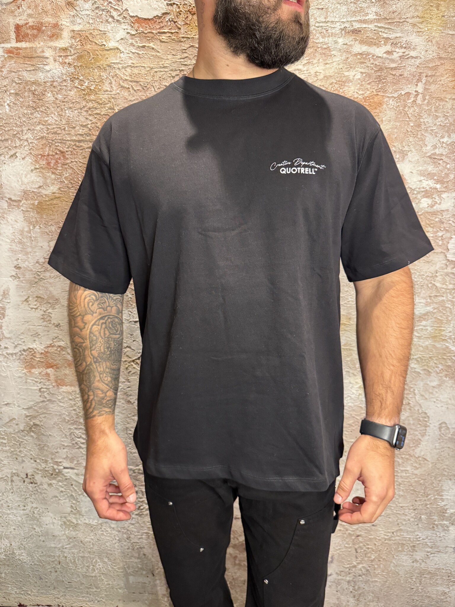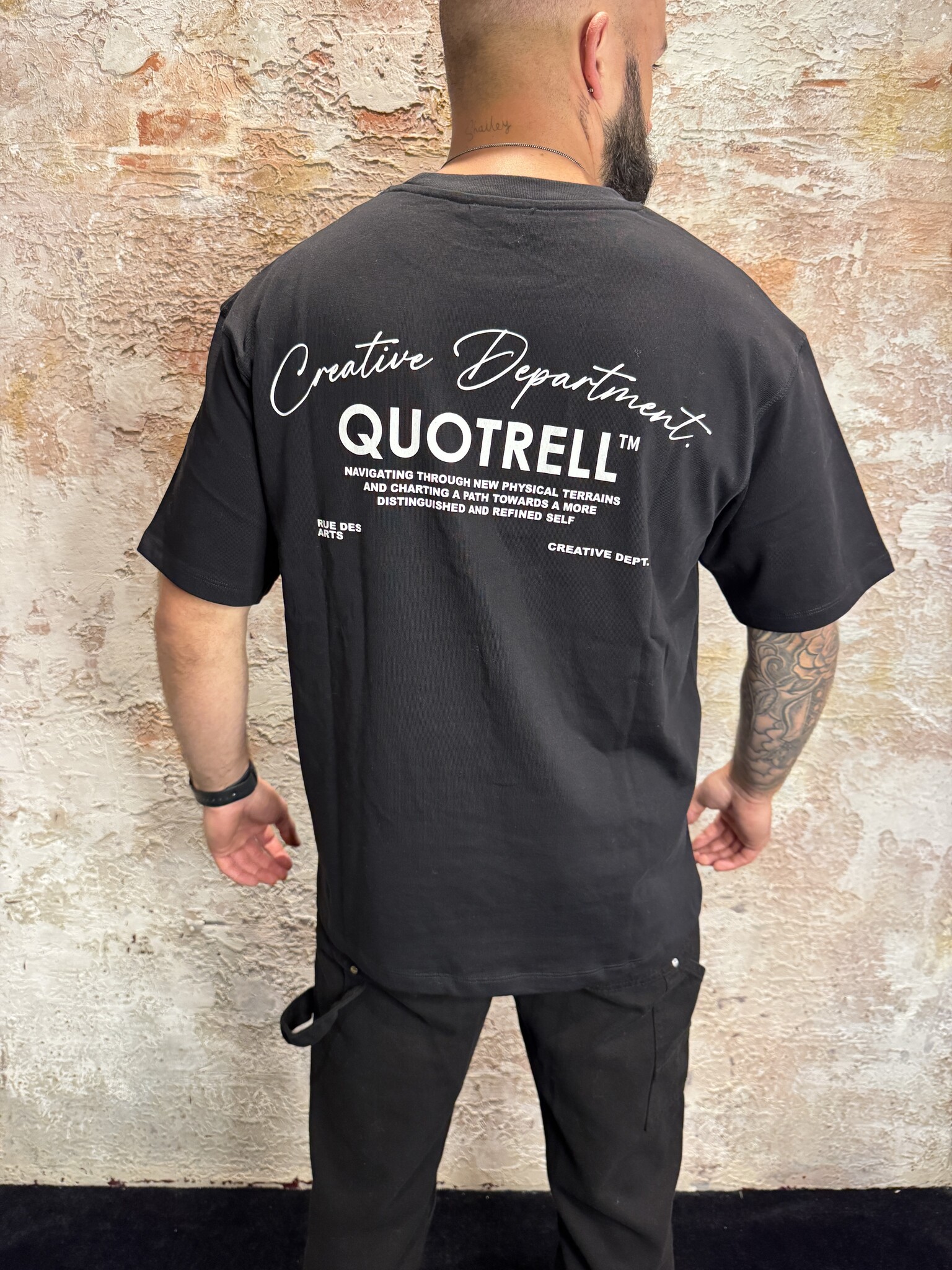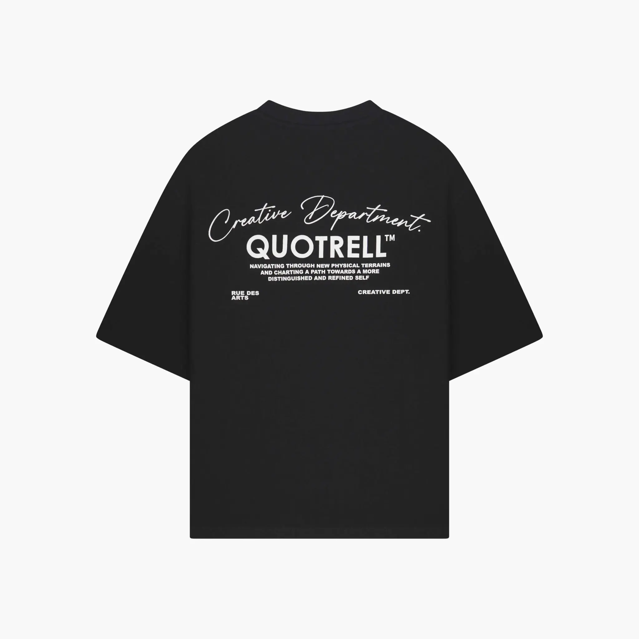 De Quotrell Department Oversized Tee Black White is een zwart T-shirt met een comfortabele oversized fit. Voorzien van een subtiel logo op de borst en een opvallende witte “Creative Department” print op de achterkant. Stijlvol en modern.