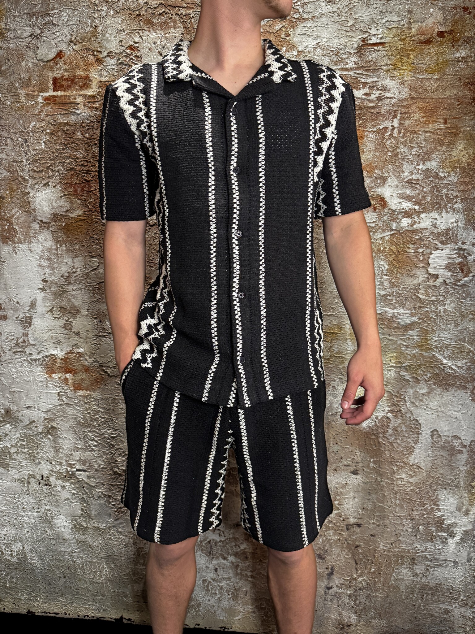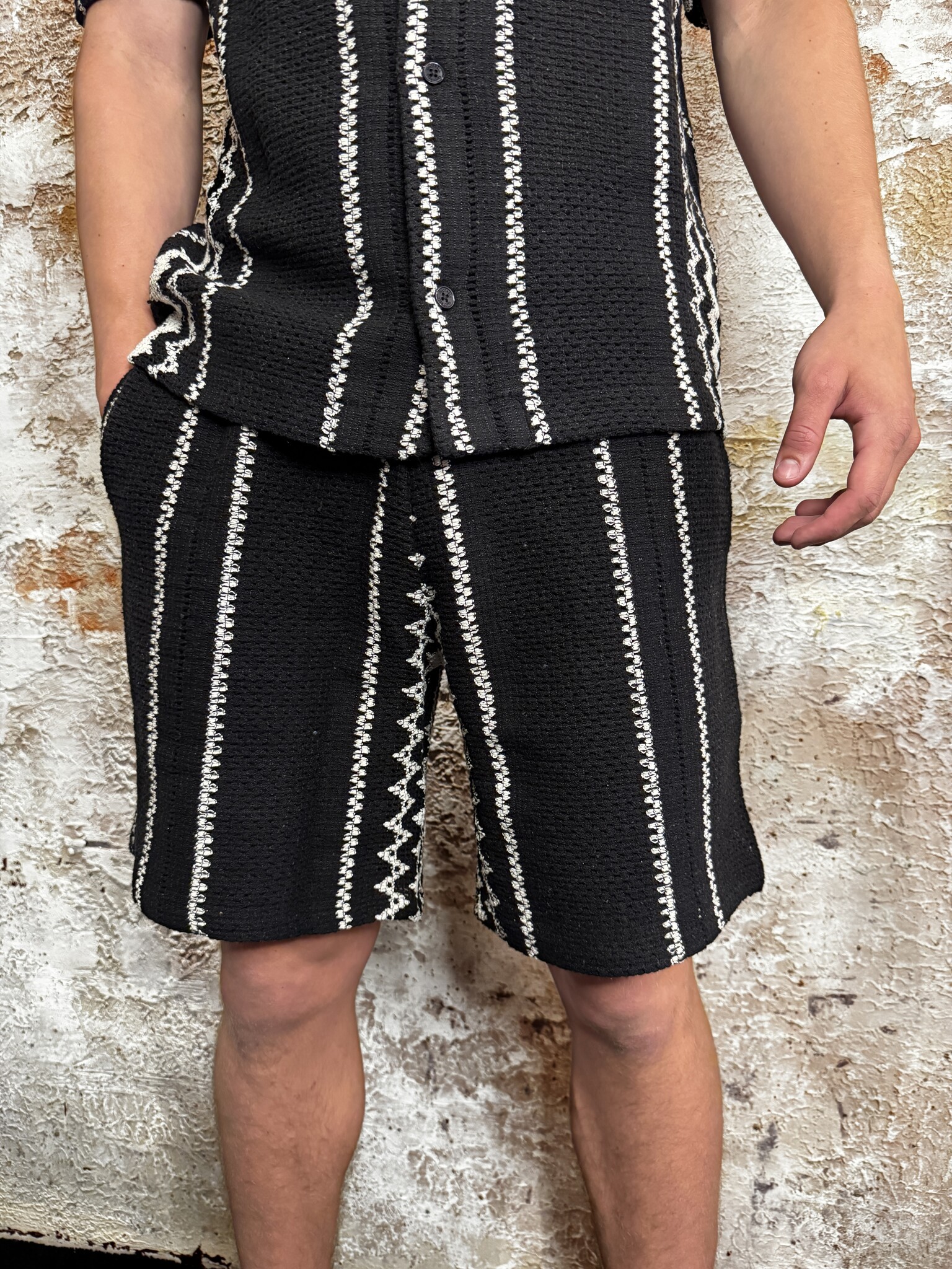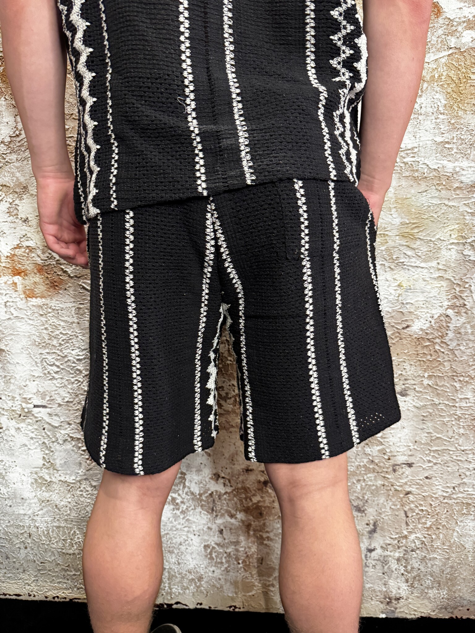 Quotrell Granada Short Black Off White is een zomerse short met een gehaakt patroon en verticale strepen in rood. De relaxte pasvorm en elastische tailleband zorgen voor comfort én stijl. Perfect in combinatie met het bijpassende shirt.
