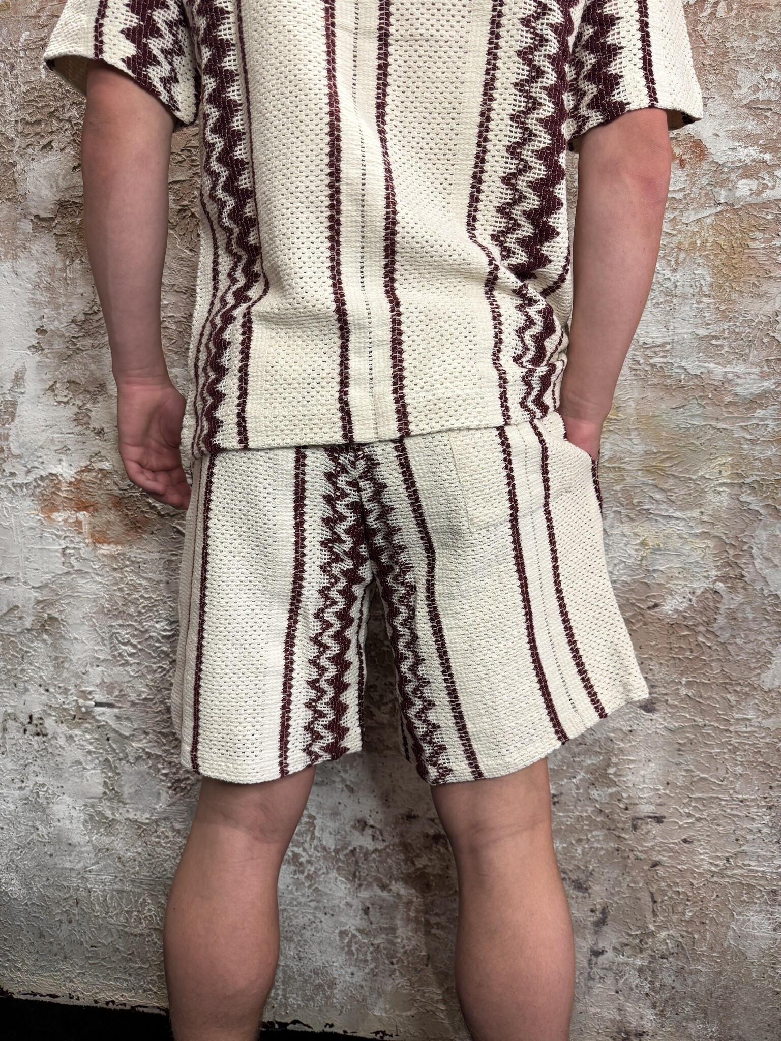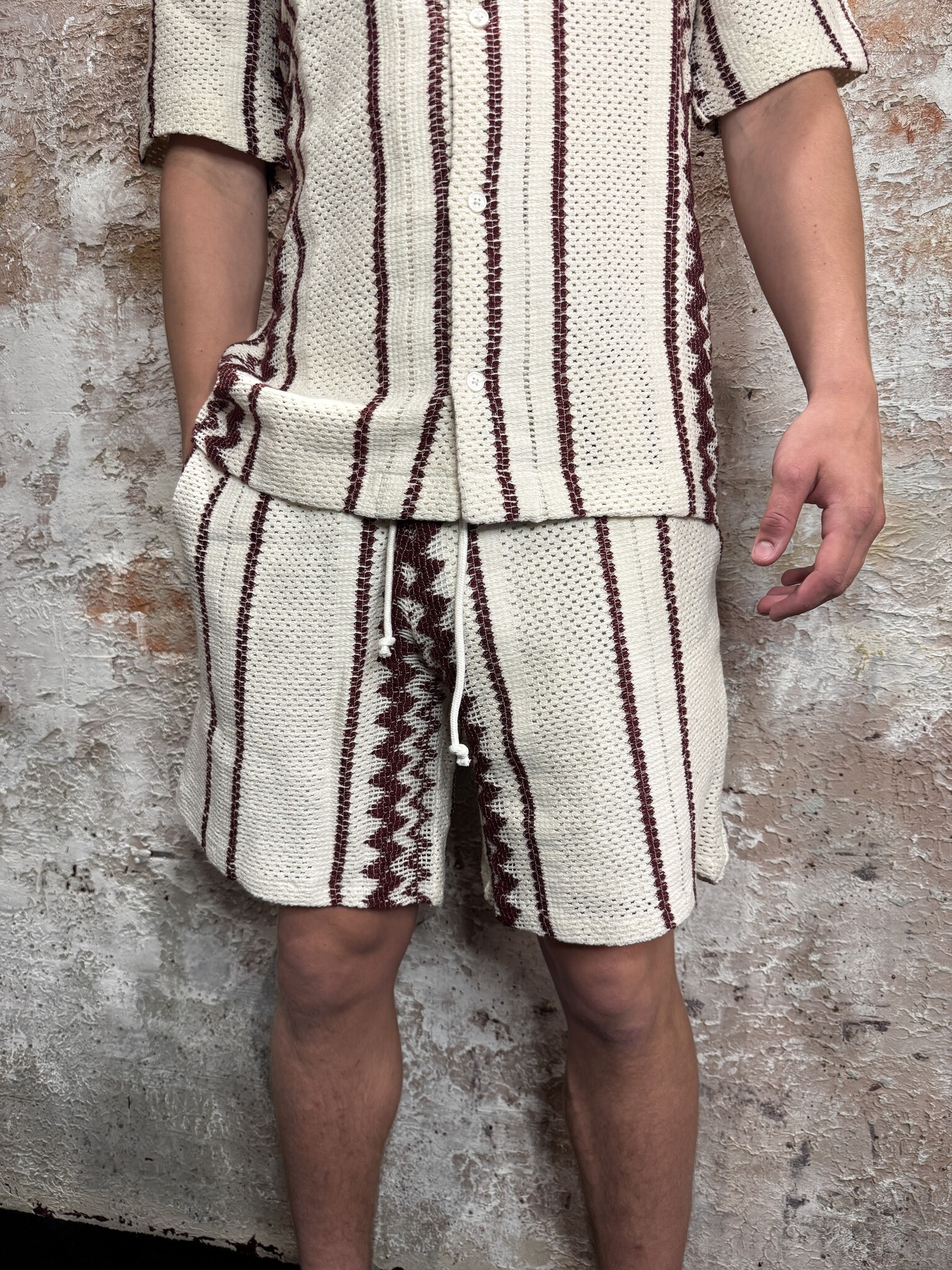 Quotrell Granada Short Off White Red is een zomerse short met een gehaakt patroon en verticale strepen in rood. De relaxte pasvorm en elastische tailleband zorgen voor comfort én stijl. Perfect in combinatie met het bijpassende shirt.