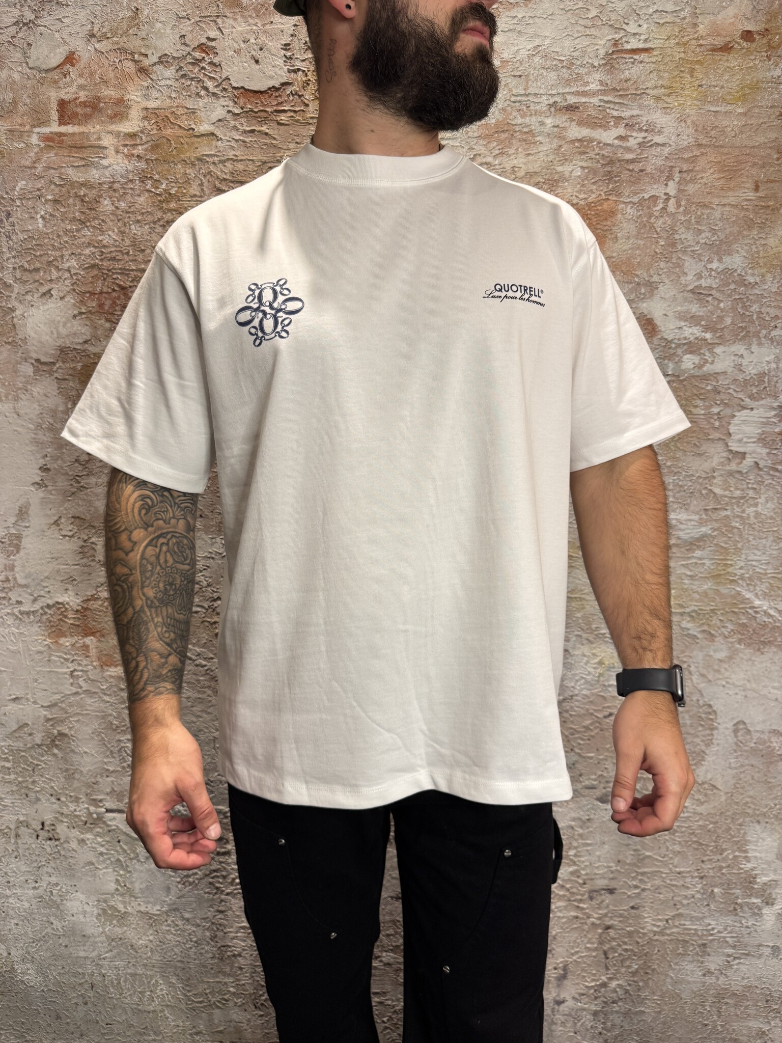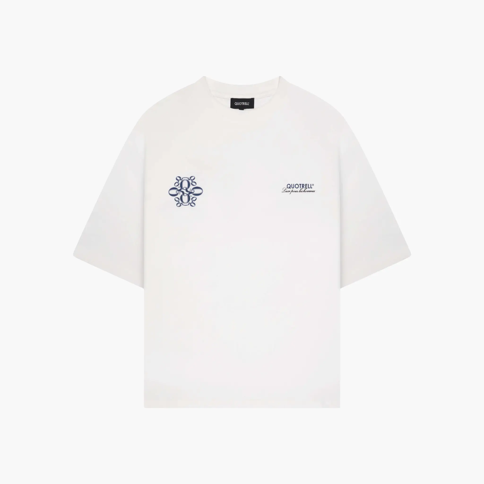 Quotrell Insignia Oversized Tee in White Blue is een stijlvolle must-have met een relaxte oversized fit. Voorzien van subtiele branding op de borst en een groot luxe Quotrell Insignia logo op de achterkant. Gemaakt van zacht katoen voor optimaal comfort.