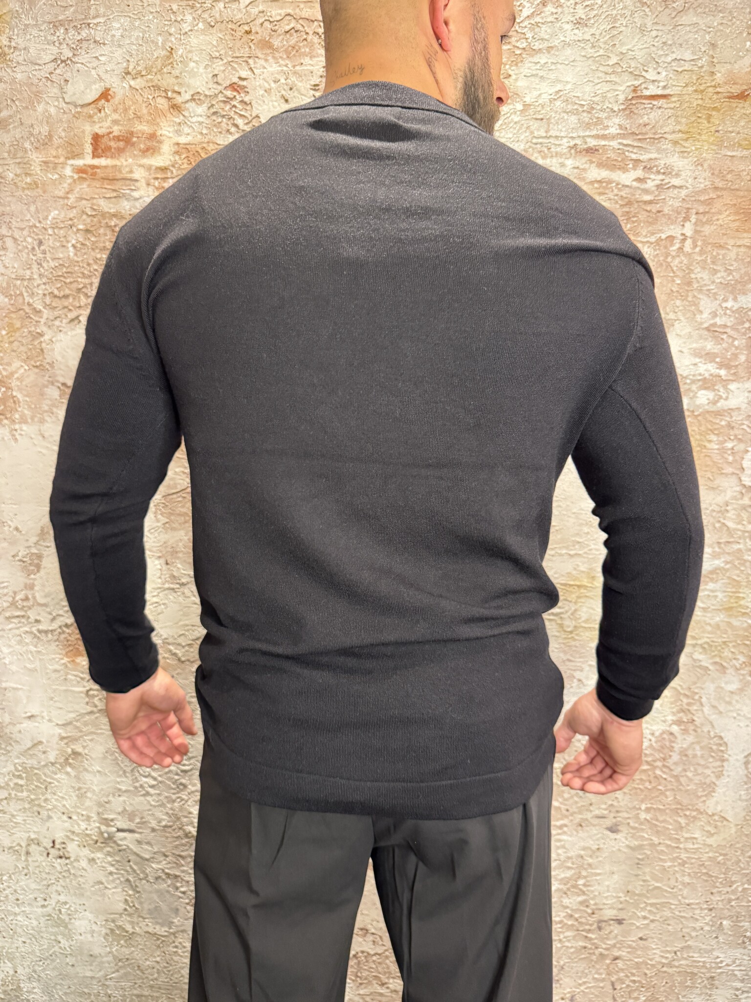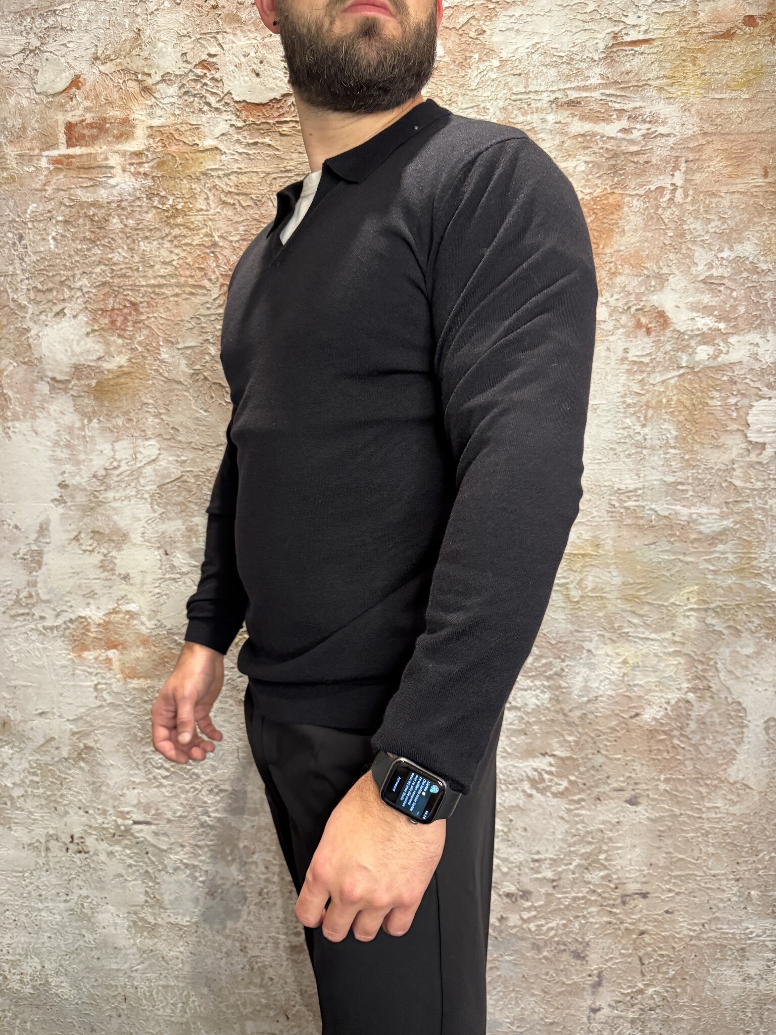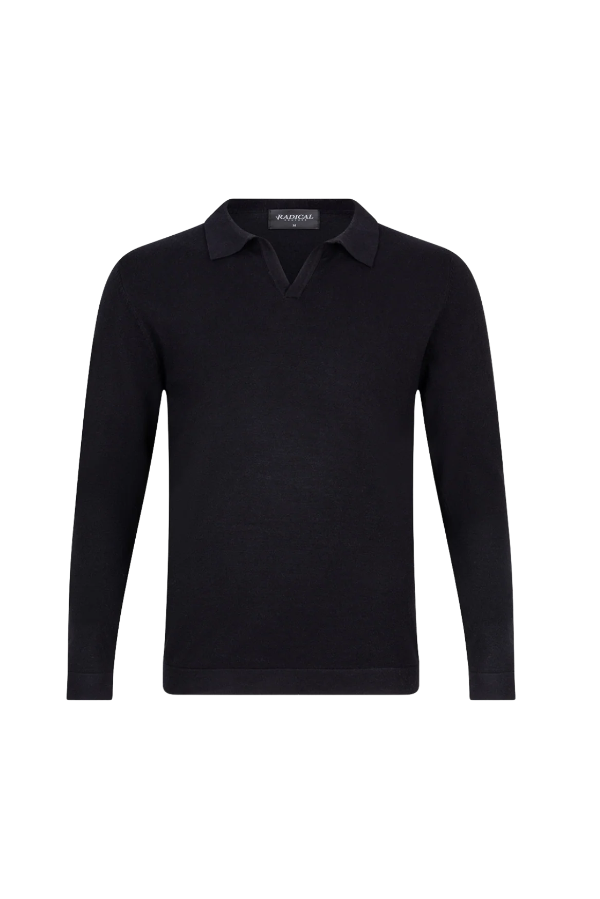 Radical Knitwear Sarté Polo Buttonless Black – een elegante zwarte knit polo met lange mouwen en een buttonless kraag voor een moderne, minimalistische look. Gemaakt van zachte, comfortabele knitwear, perfect voor zowel casual als smart-casual outfits.