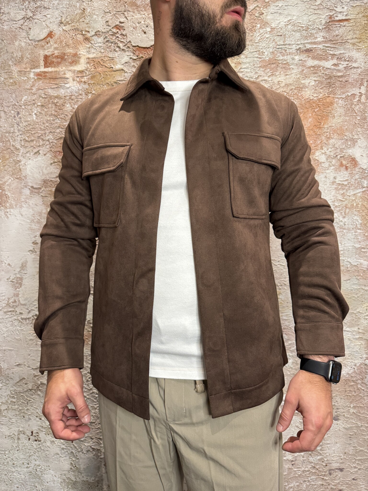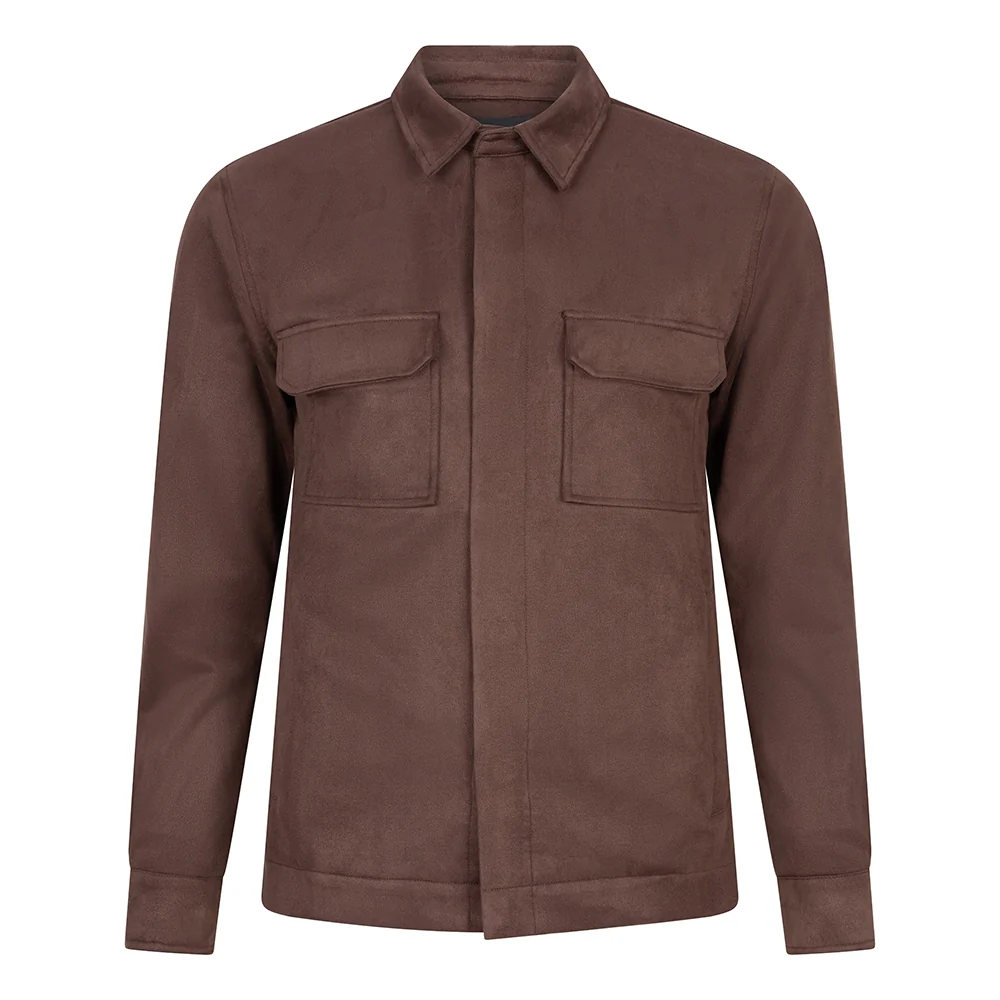 Radical Nero Jacket Brown, een stijlvolle bruine overshirt jas met een strakke look en zachte suèdelook afwerking. Voorzien van twee borstzakken en innovatieve magneetsluiting voor een clean design. Perfect te combineren voor casual en smart outfits.