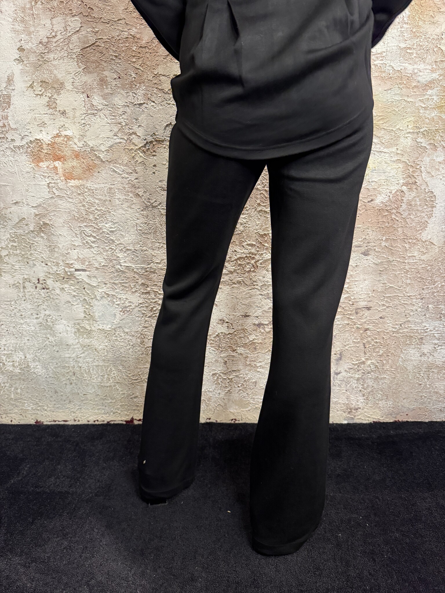 Deze flared broek van Radical combineert comfort en stijl in één. De zwarte stretchstof sluit perfect aan en beweegt soepel mee. De hoge taille en elegante naad zorgen voor een slank silhouet, ideaal voor elke gelegenheid.