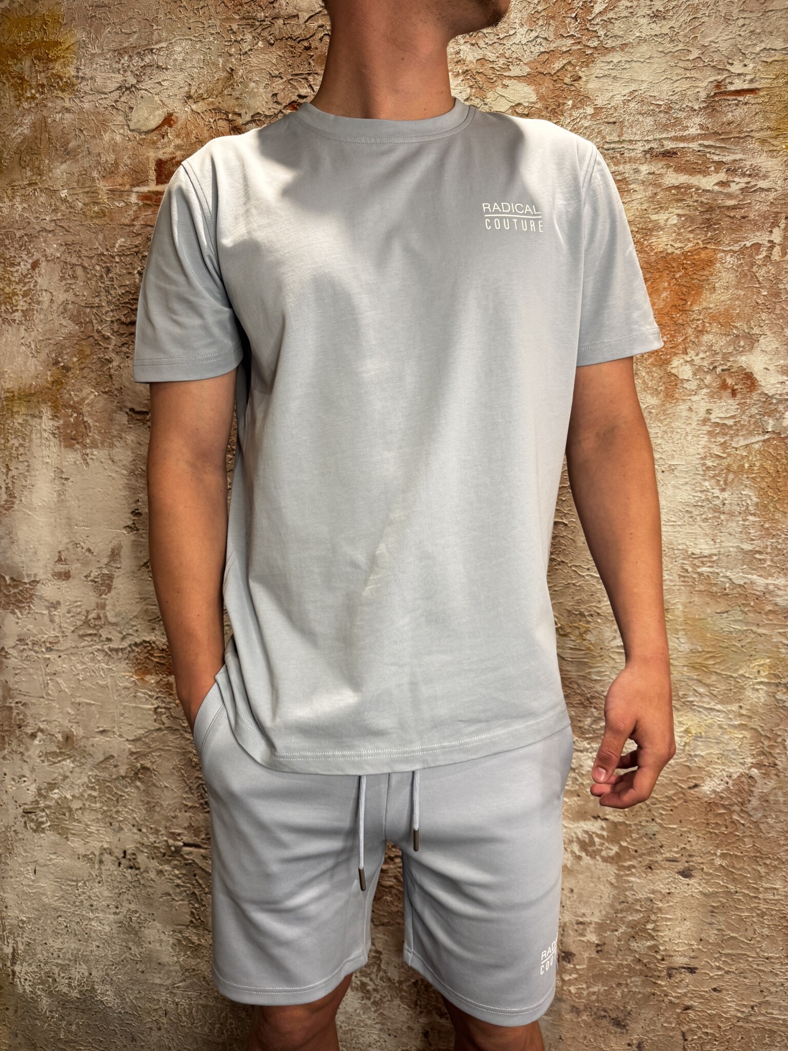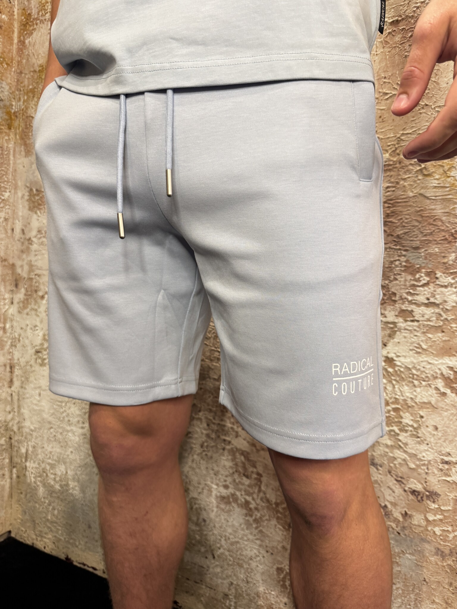 Radical Sweat Short in Light Blue. Comfortabele short van zachte sweatstof met trekkoord en steekzakken. Voorzien van subtiel Radical Couture-logo op het been. Perfect te combineren met het bijpassende T-shirt. Ons model draagt maat M.