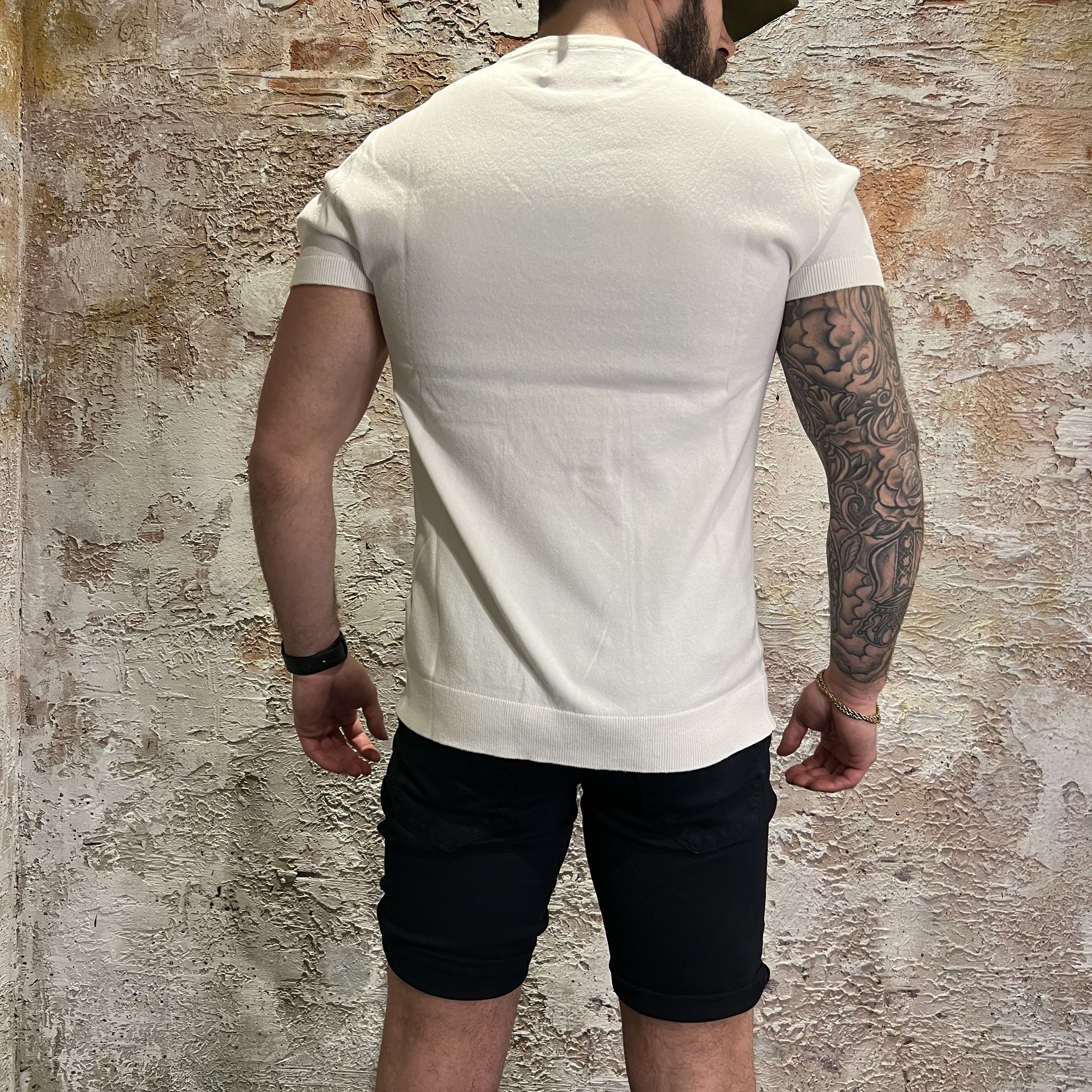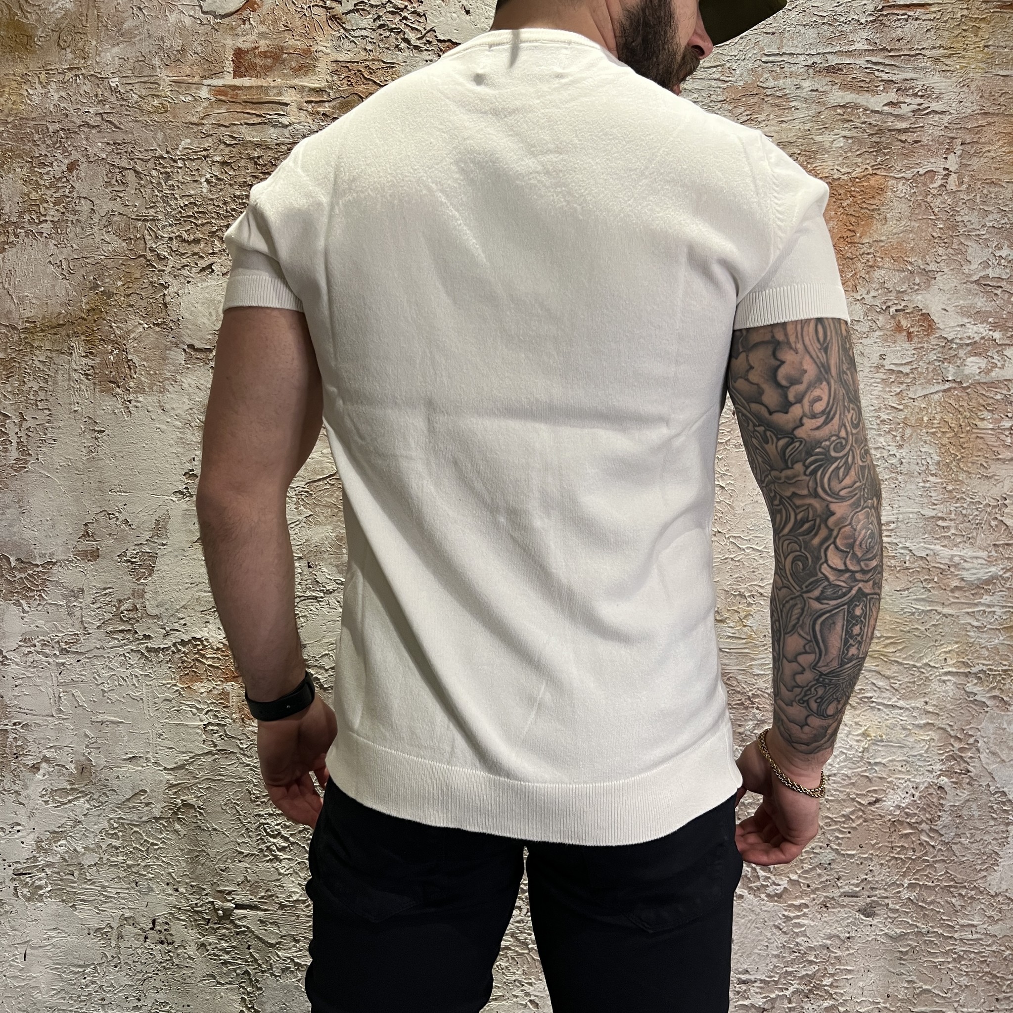 Gebreid t-shirt in een zand kleur met ronde hals.