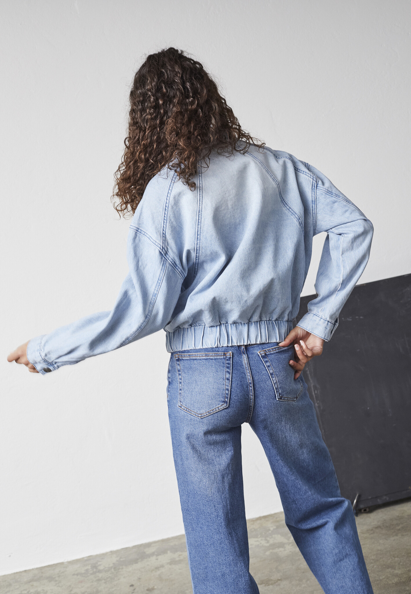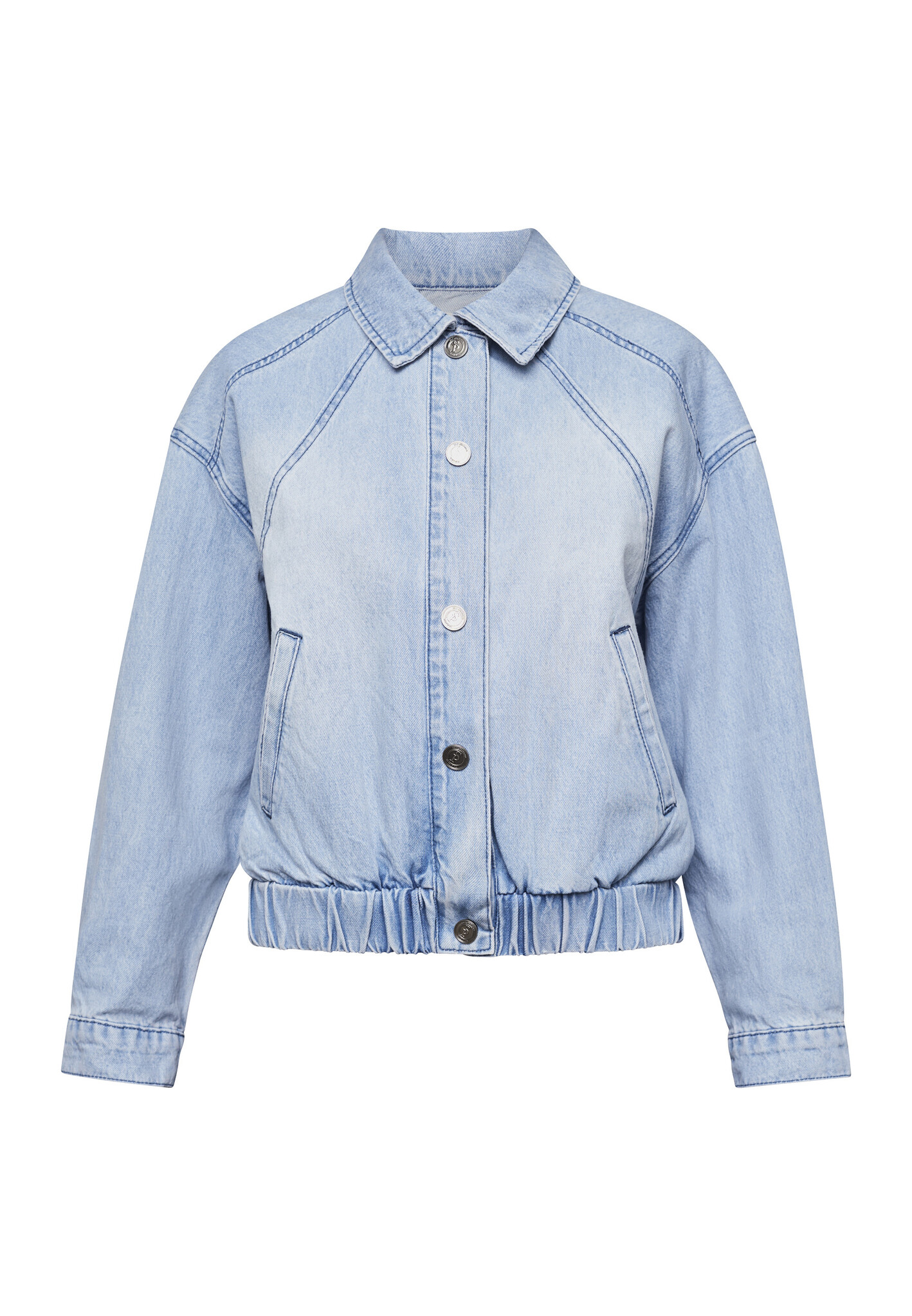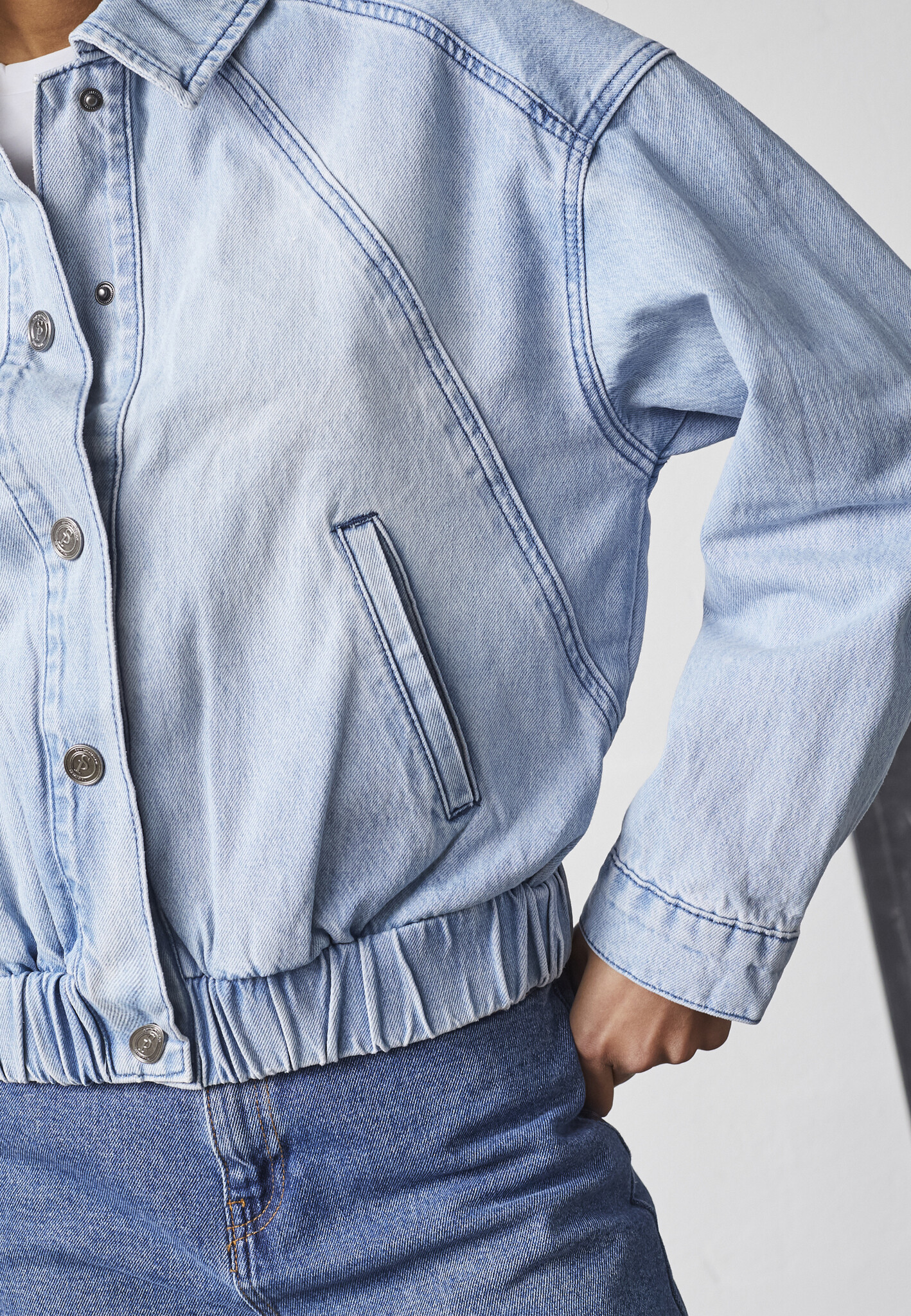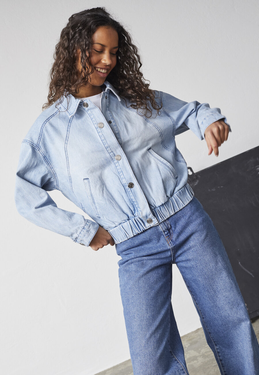 Sisters Point Fey-Ja Jacket is een stijlvolle dames denim jas in een lichte wassing. Met elastische tailleband, stoere zilverkleurige knopen en een relaxed fit is dit het perfecte jasje voor een casual, trendy look. Ideaal voor voorjaar en zomer!