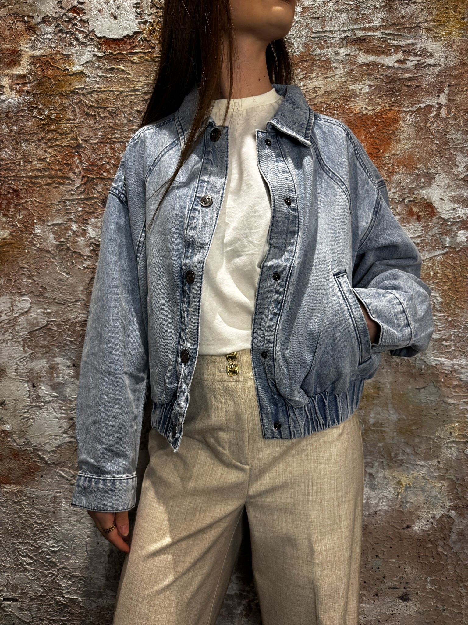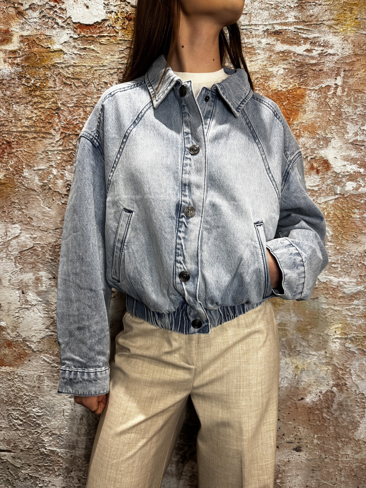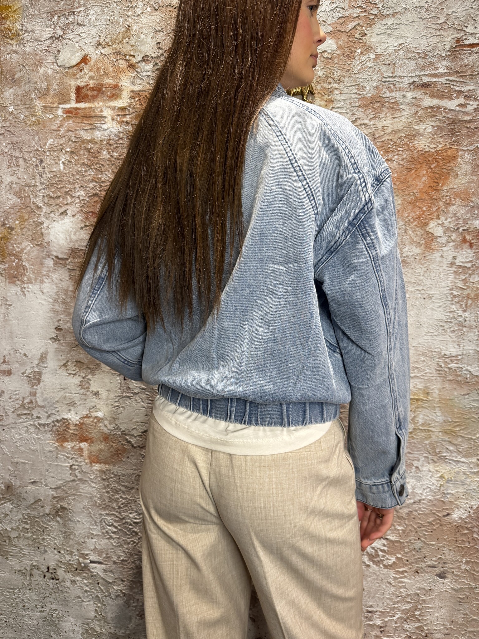 Sisters Point Fey-Ja Jacket is een stijlvolle dames denim jas in een lichte wassing. Met elastische tailleband, stoere zilverkleurige knopen en een relaxed fit is dit het perfecte jasje voor een casual, trendy look. Ideaal voor voorjaar en zomer!