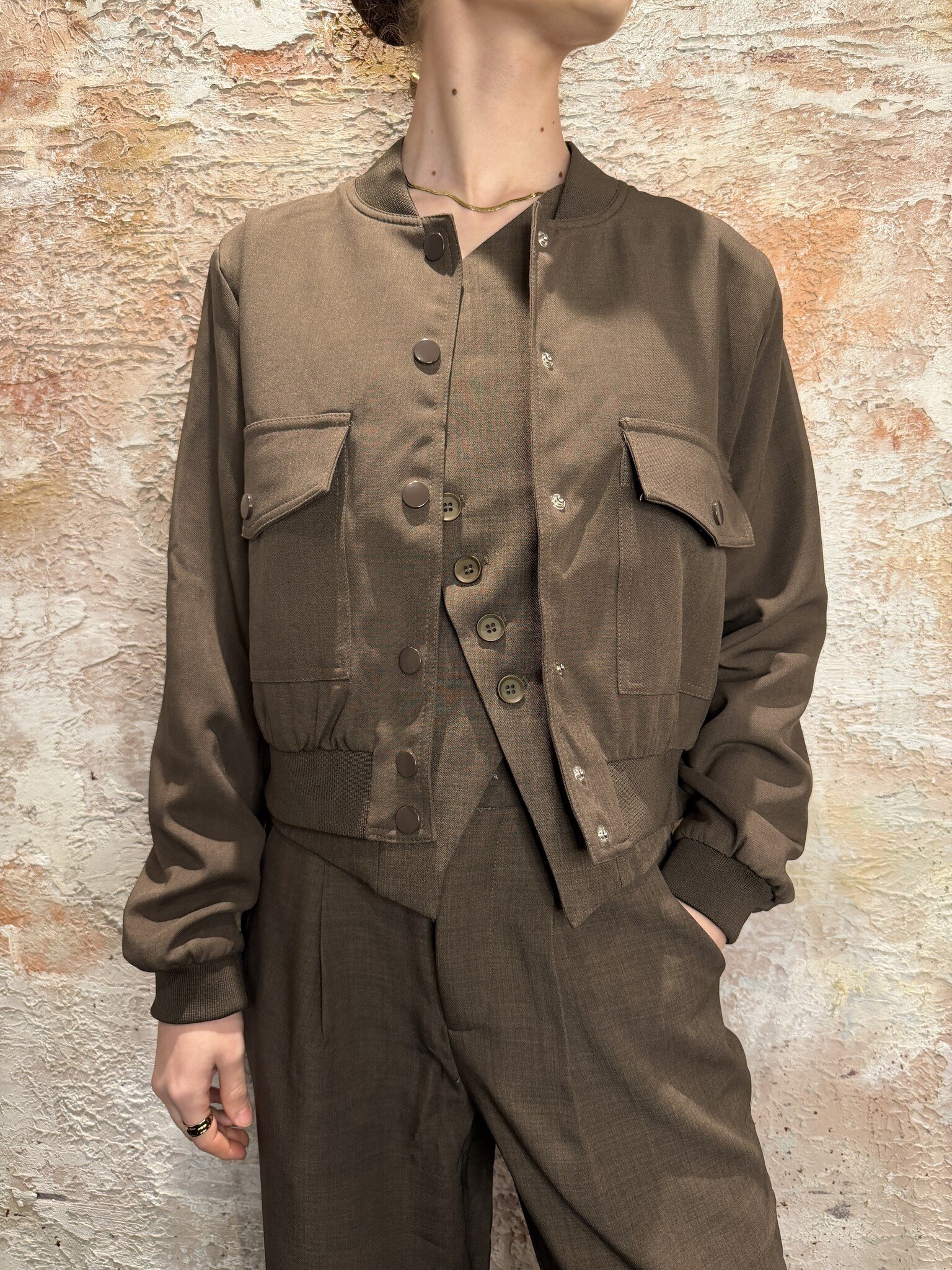 De GARWIN-JA20 is een korte effen jas met een knoopsluiting aan de voorzijde en twee steekzakken aan beide kanten. De jas is afgewerkt met een brede geribde elastische boord bij de polsen, taille en hals voor een comfortabele en sportieve pasvorm.