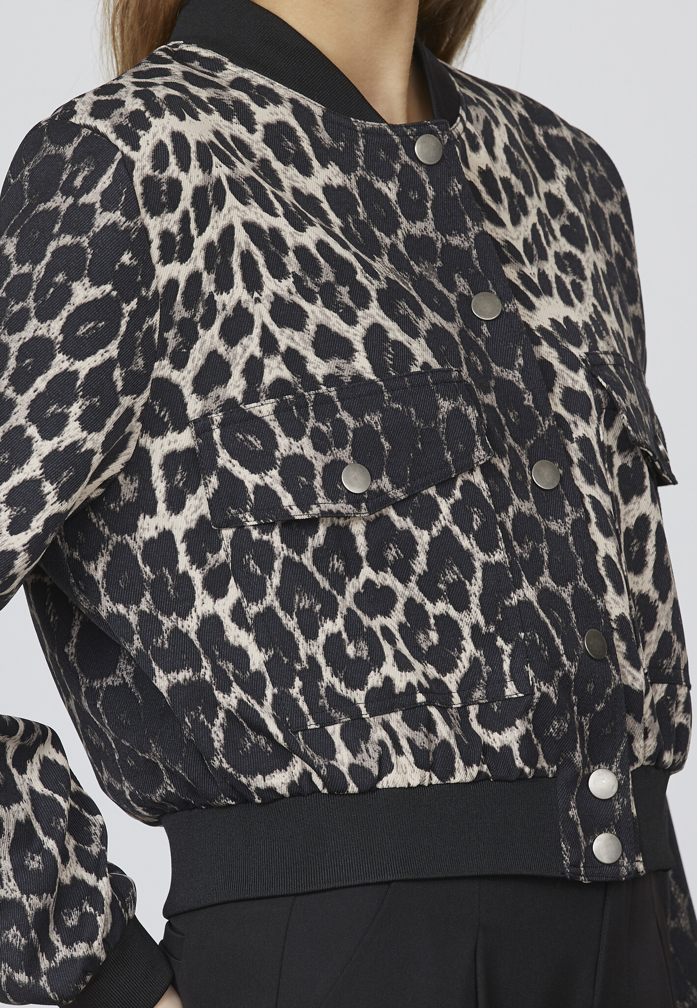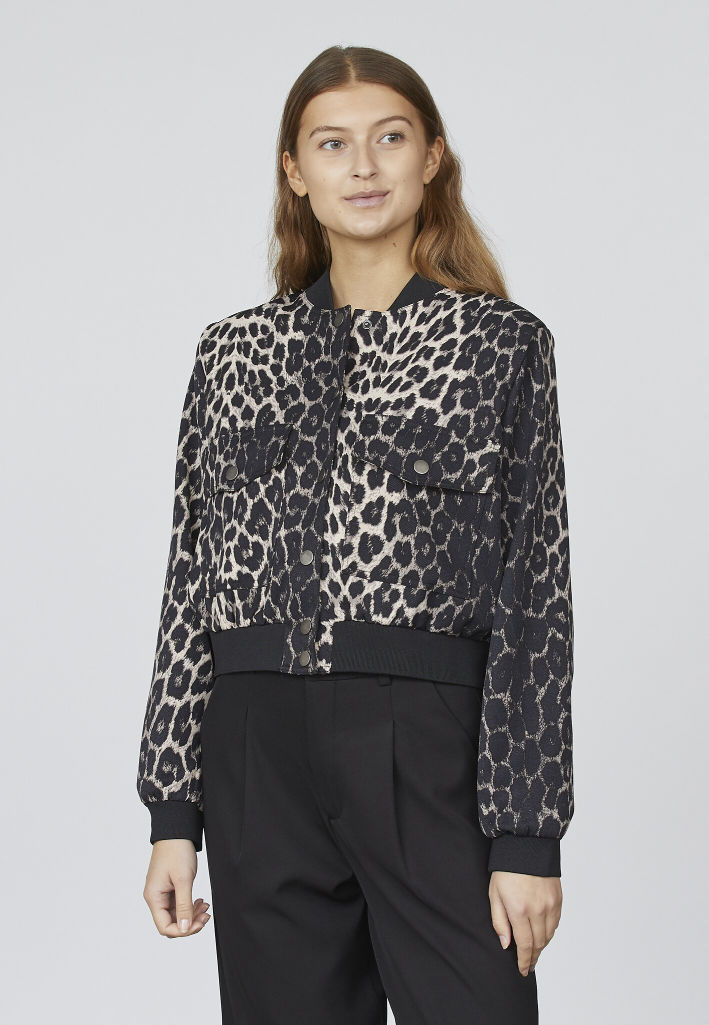 De Sisters Point Garwin JA12 Bomber Leopard is een opvallend jasje met stoere leopard print. Het bombermodel heeft lange mouwen, een elastische tailleband en manchetten, en drukknopen aan de voorkant. Voorzien van klepzakken met knopen.