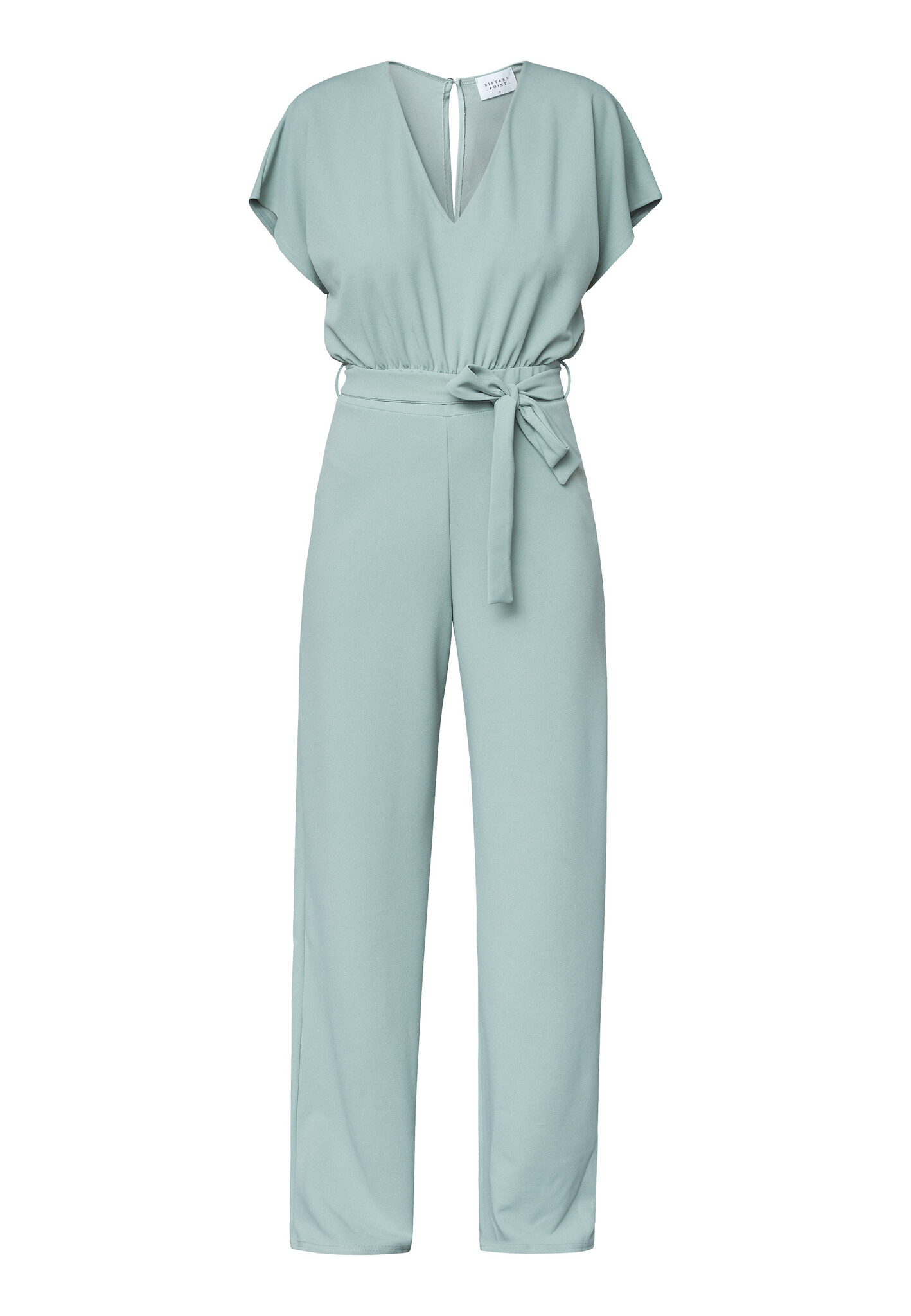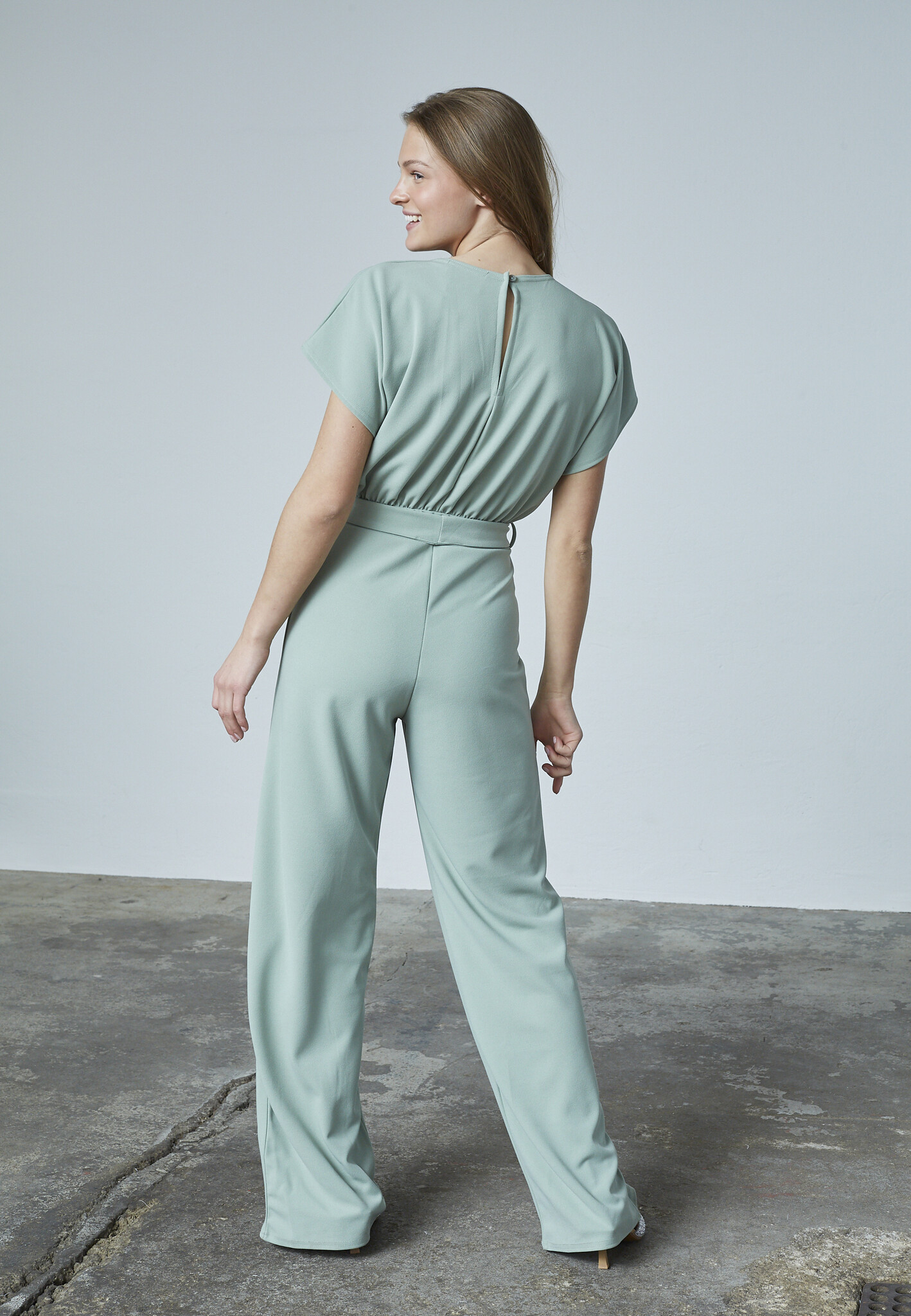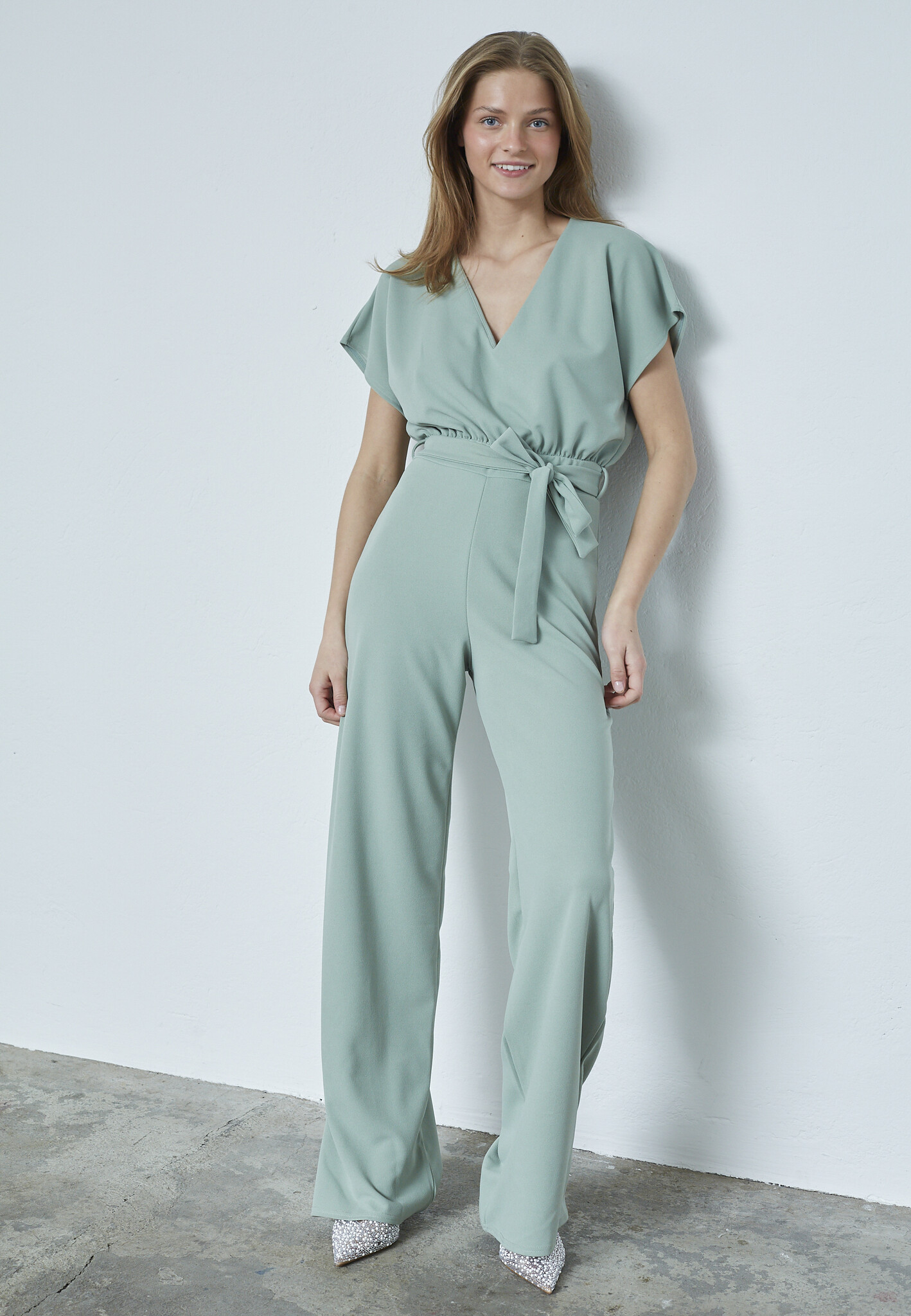 Sisters Point Jumpsuit Girl-Ju V Mint is een stijlvolle jumpsuit met een flatterende V-hals, korte mouwen en ceintuur in de taille. De wijde pijpen en frisse mintkleur geven een elegante en zomerse look. Perfect voor zowel casual als chique gelegenheden.