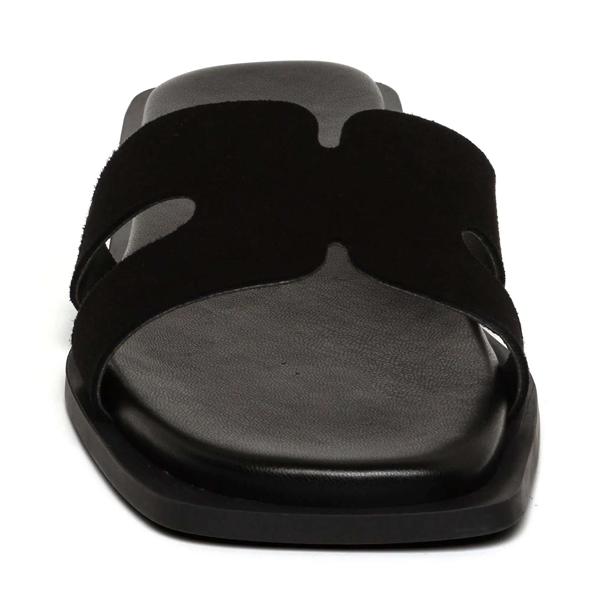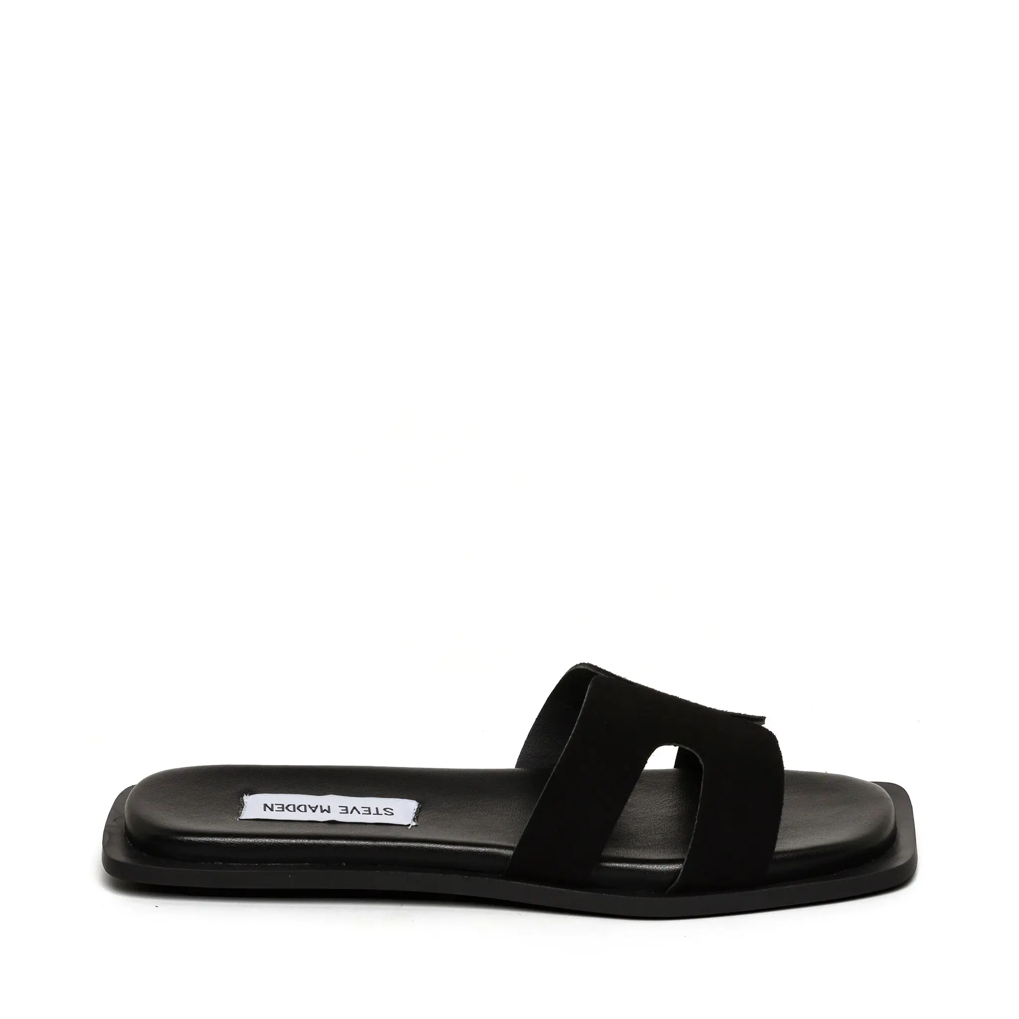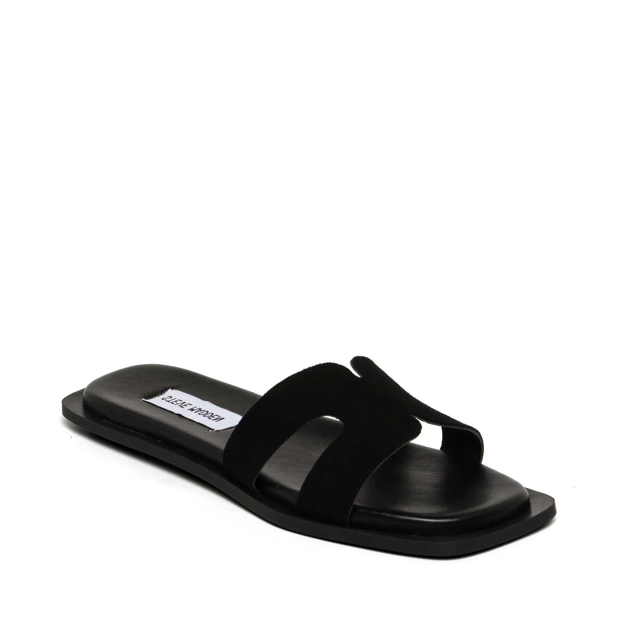 Steve Madden Sofia Slide in Black Suede is een minimalistische, stijlvolle slipper met een moderne uitstraling. Het zachte suède bovenwerk en het uitgesneden design geven een elegante touch, terwijl het platte voetbed zorgt voor comfort!