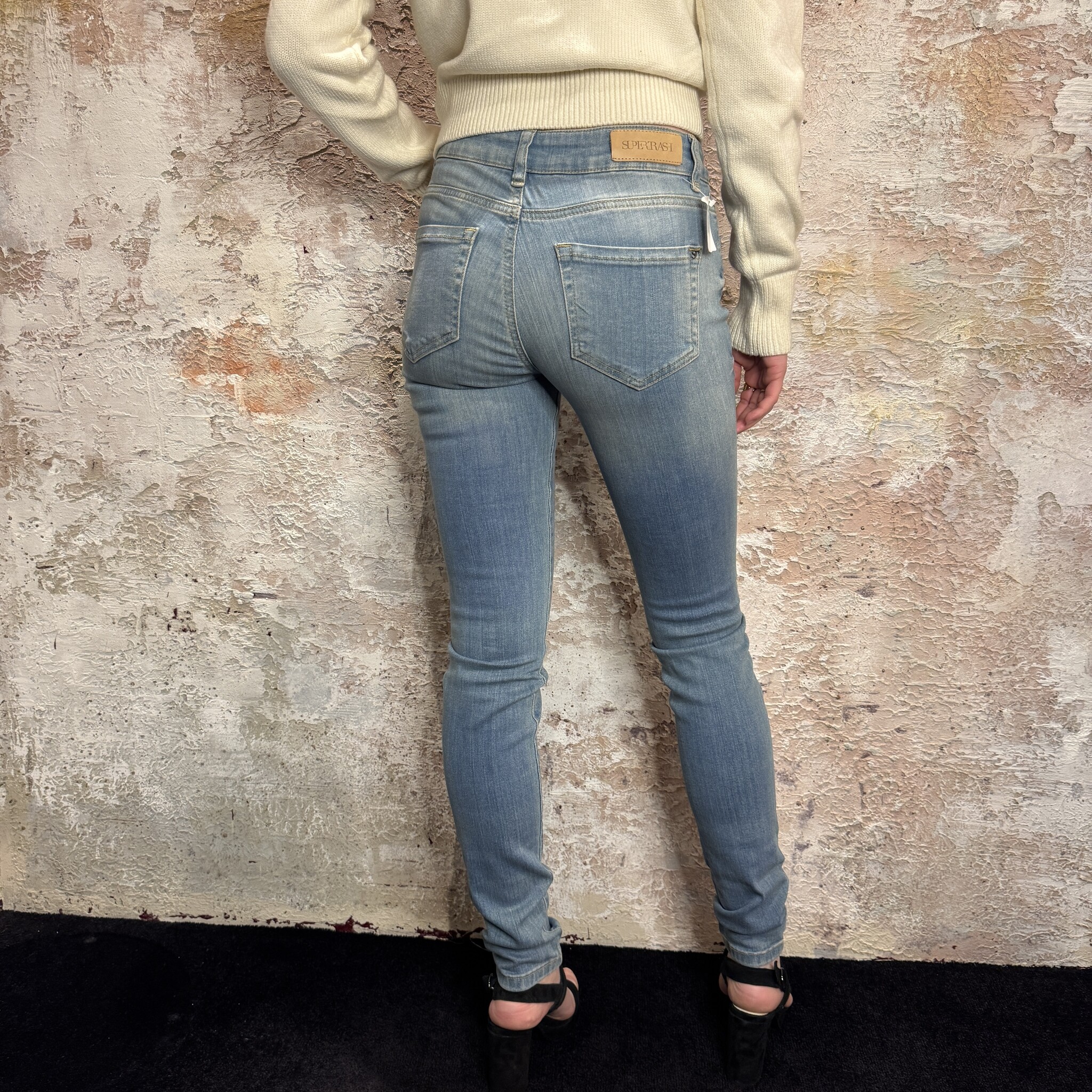 De Supertrash Paradise NOS Mid Blue Used is een tijdloze skinny jeans in een lichte, gedragen wassing. De broek heeft een hoge taille en een aansluitende pasvorm die perfect om het lichaam vormt. Gemaakt van stretchdenim voor optimaal comfort en stijl.