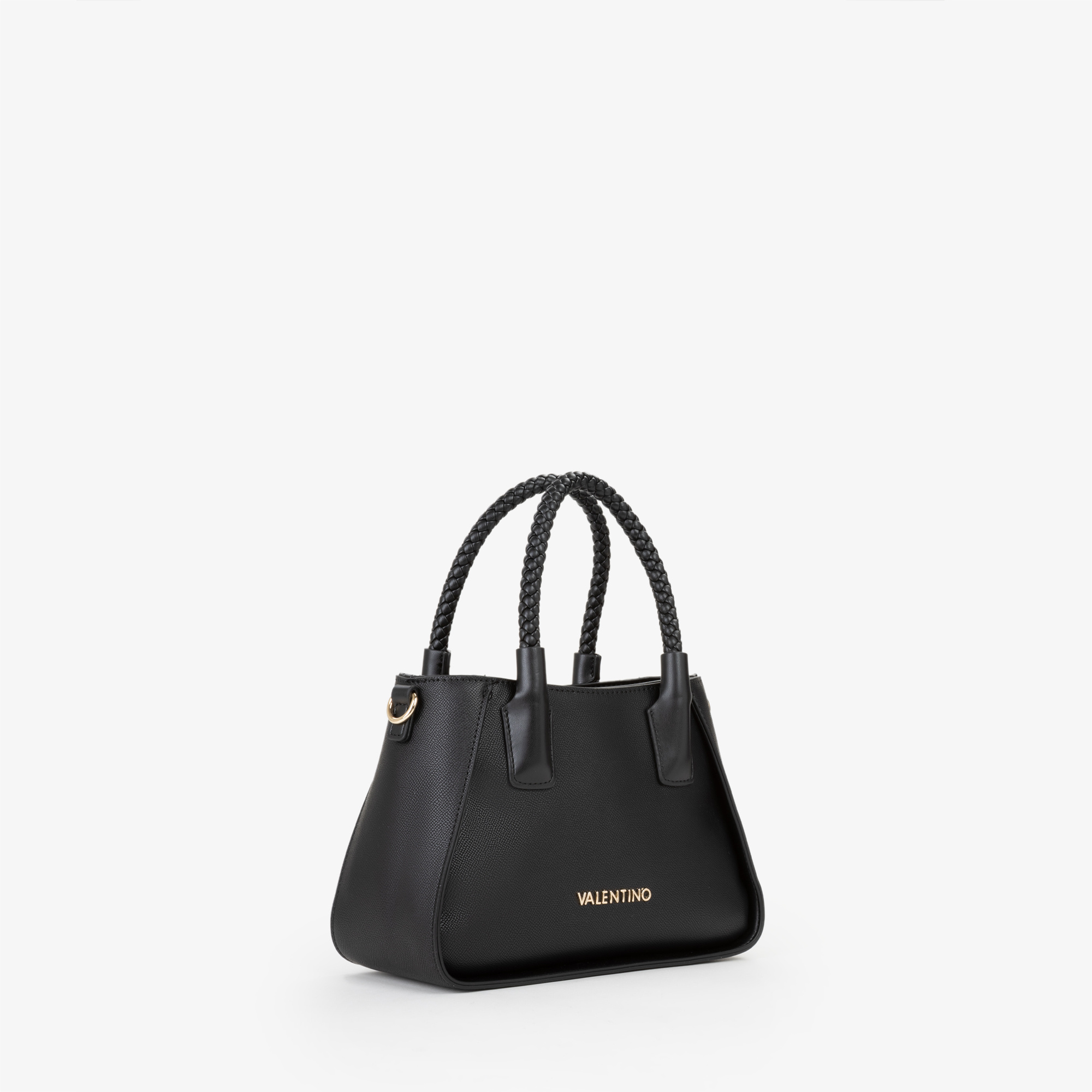 Valentino Eris Re Shopping Bag Nero, luxe zwarte handtas met gevlochten handles en gouden logo detail. Praktisch & classy voor elke dag. Nu verkrijgbaar bij Have2Have Alkmaar.