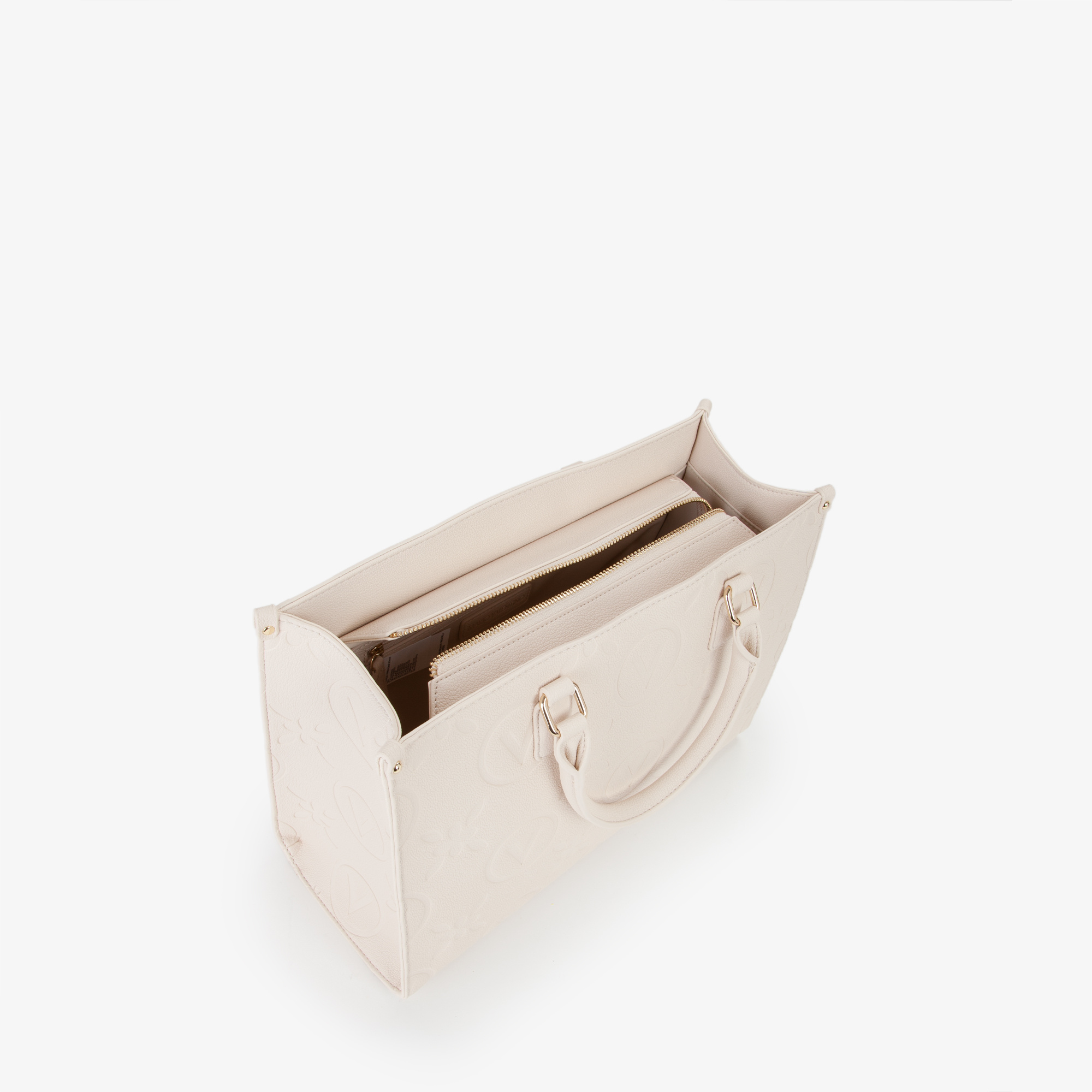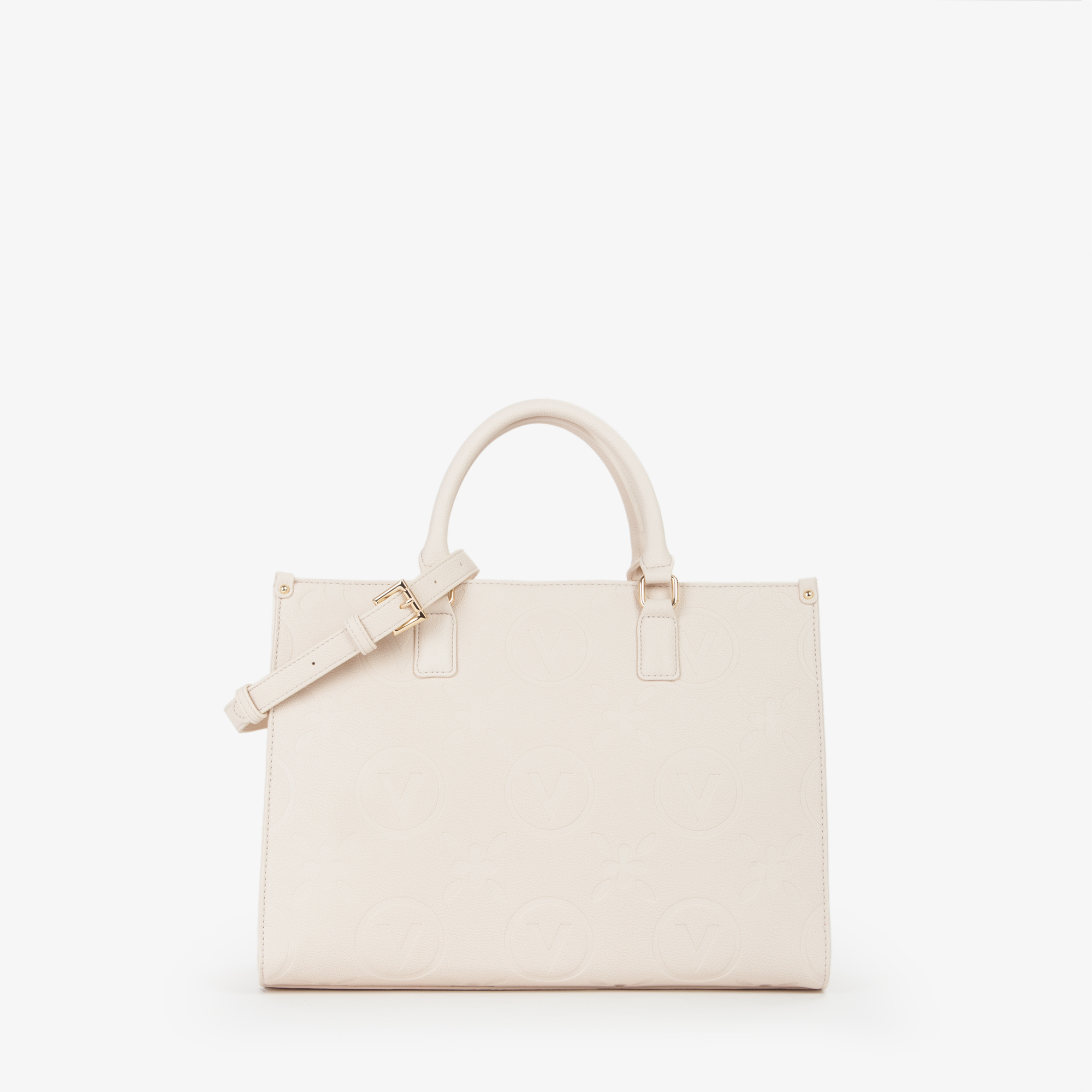 Valentino Samba Re Shopping Bag Ecru, luxe shopper met embossed logo en elegante structured vorm. Ruim, stijlvol en perfect voor werk of dagelijks gebruik. Musthave in soft ecru. Nu bij Have2Have Alkmaar.