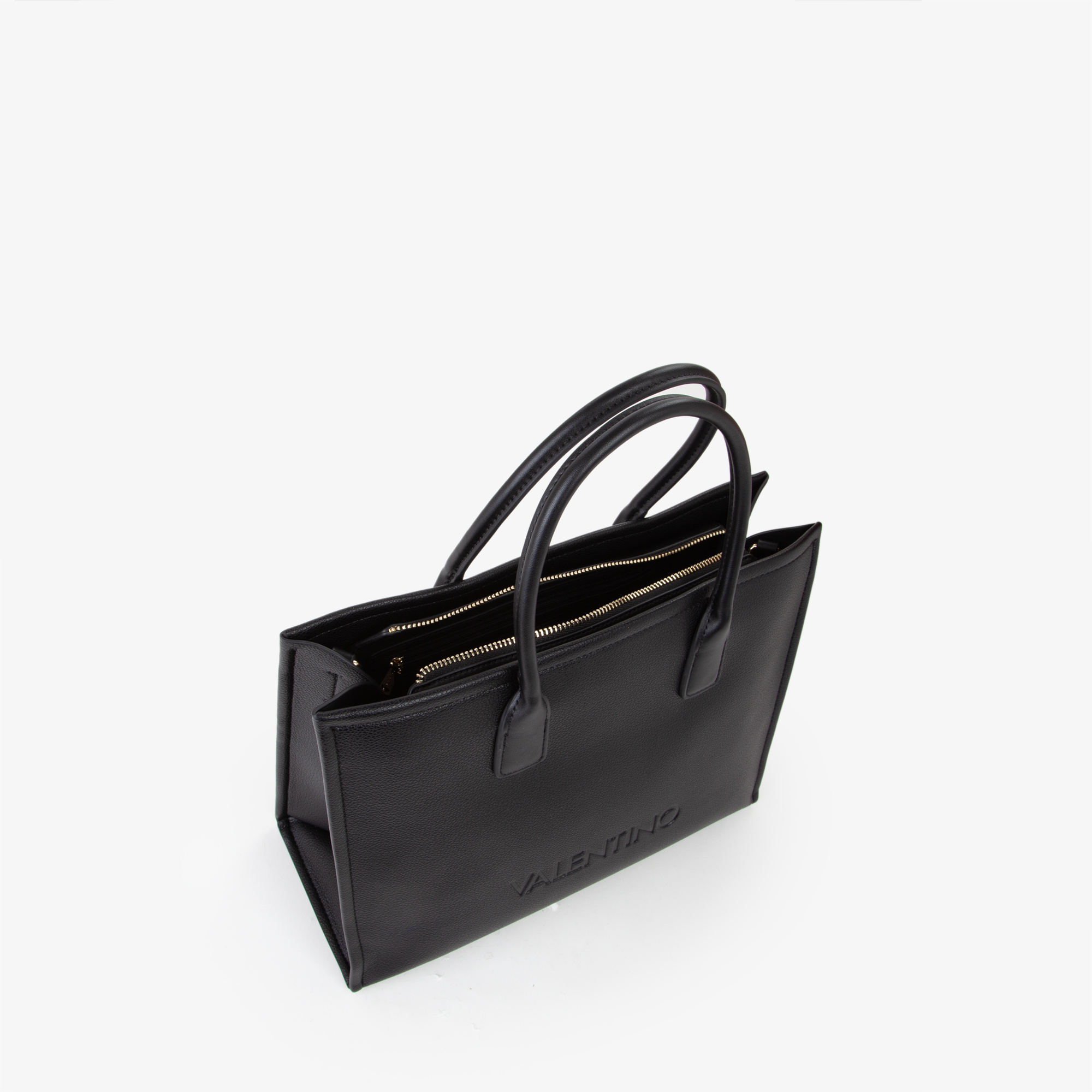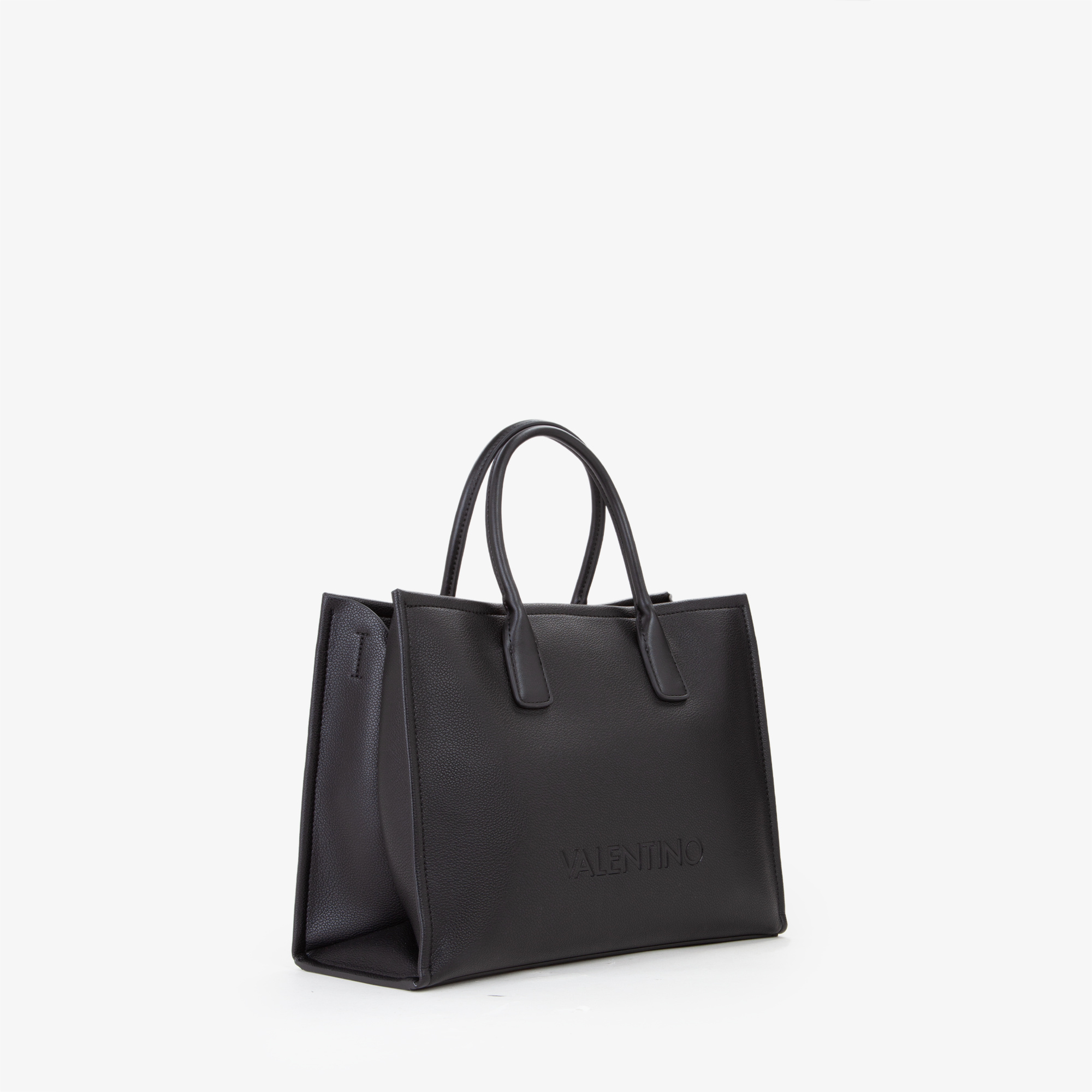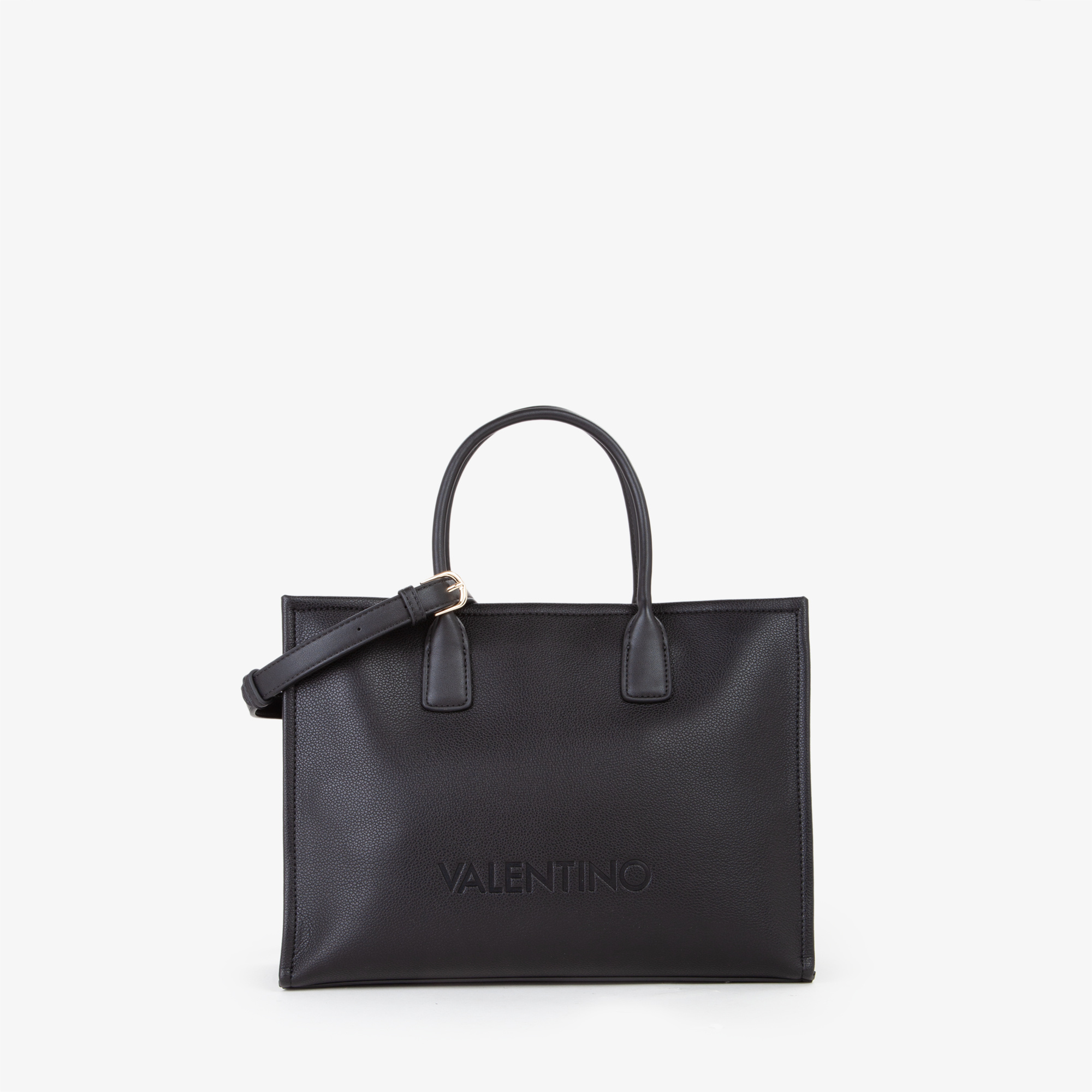 De Valentino Wilk Shopping Nero VBS9I504 is een elegante shopper in zwart kunstleer met all-over reliëf logo. Voorzien van dubbele handgrepen, afneembare schouderband met logo, goudkleurige details en ruim hoofdvak. Stijlvol en praktisch voor elke dag.