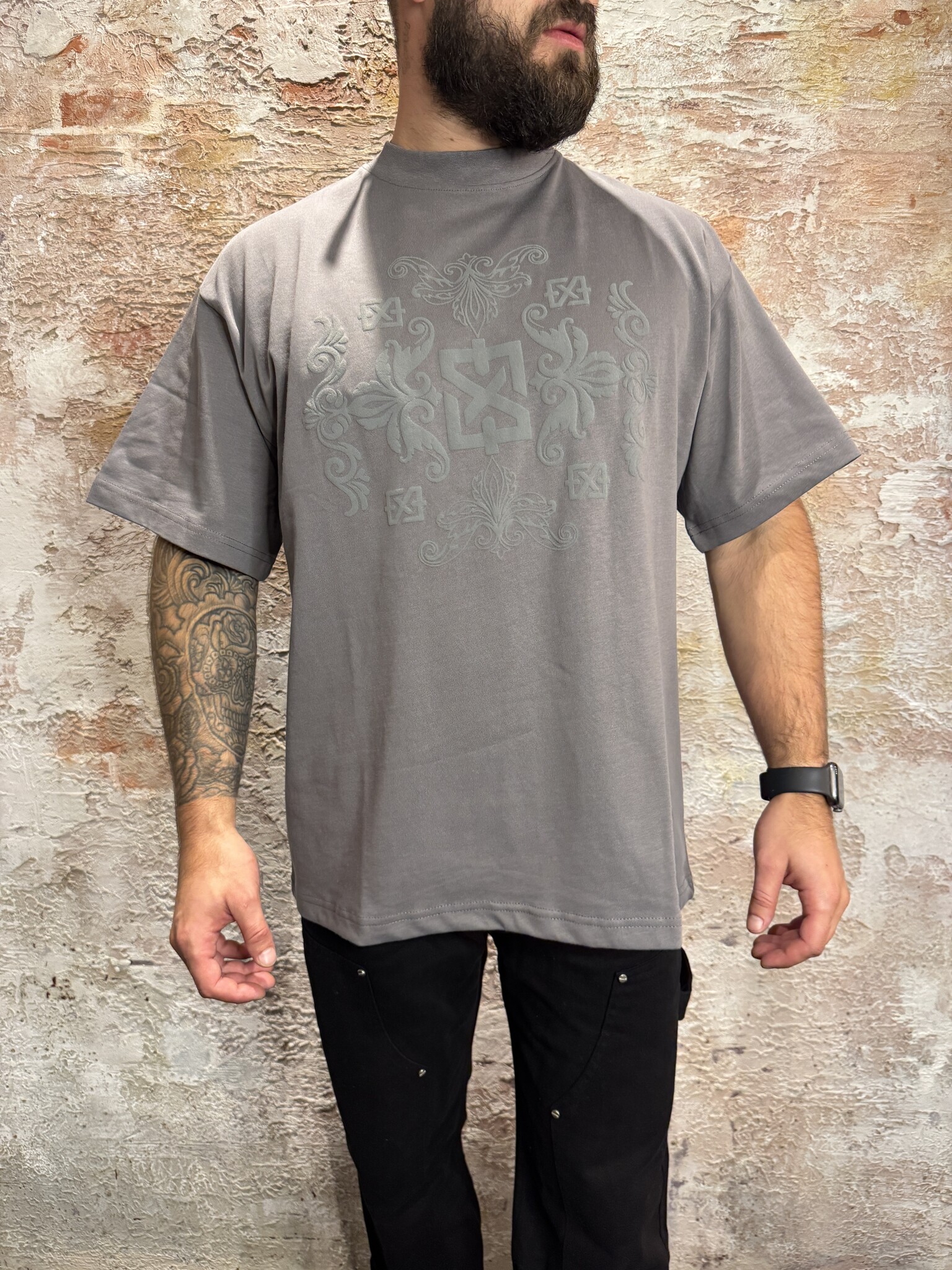 De XPLCT Baroque Tee Grey is een stijlvolle oversized T-shirt in grijs, met een subtiel barok geïnspireerd design in ton-sur-ton print. Gemaakt van hoogwaardig katoen en voorzien van het iconische XPLCT-logo voor een luxe streetwear look.