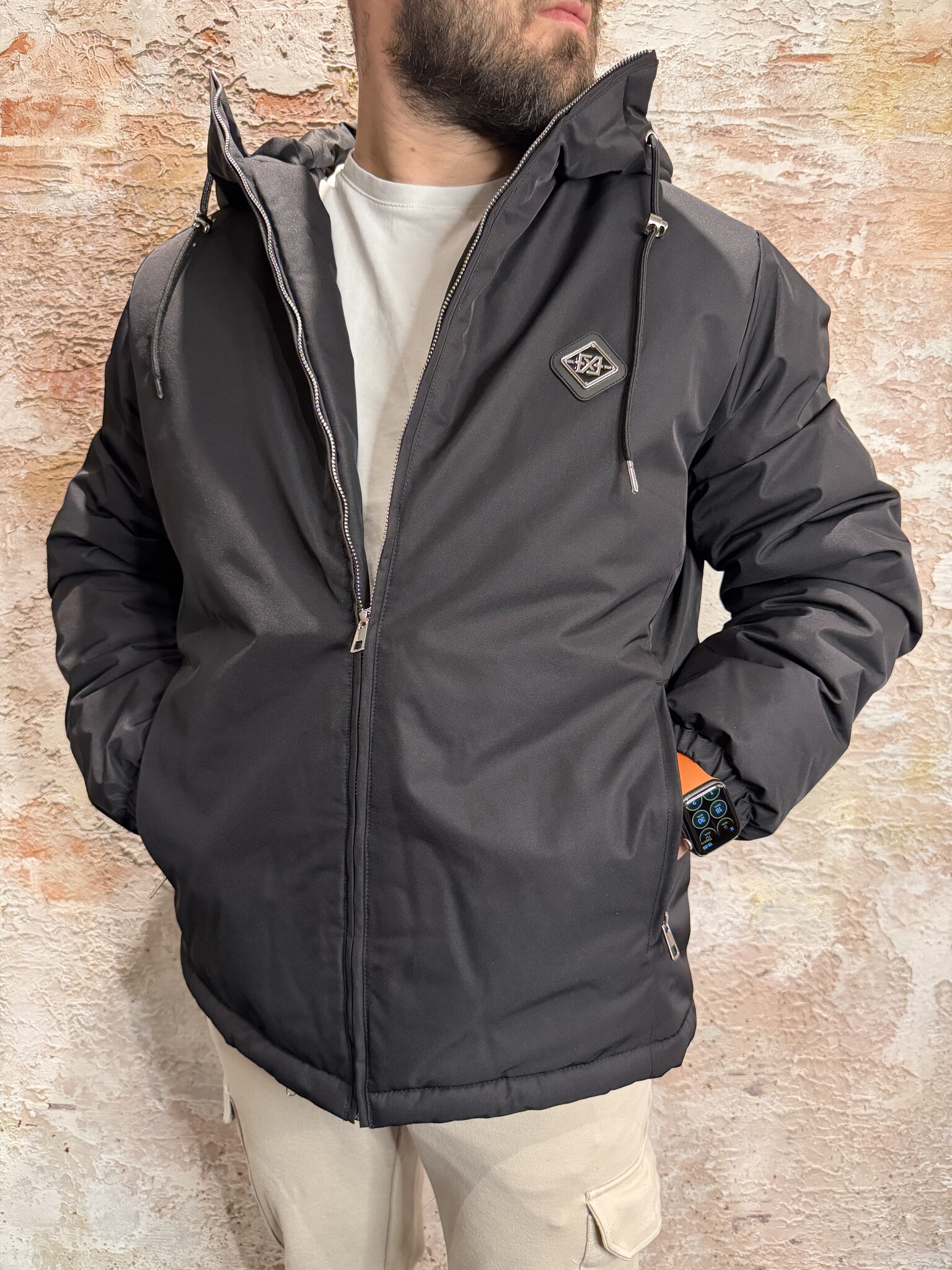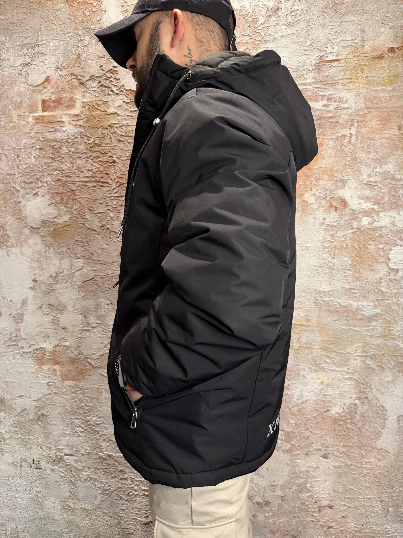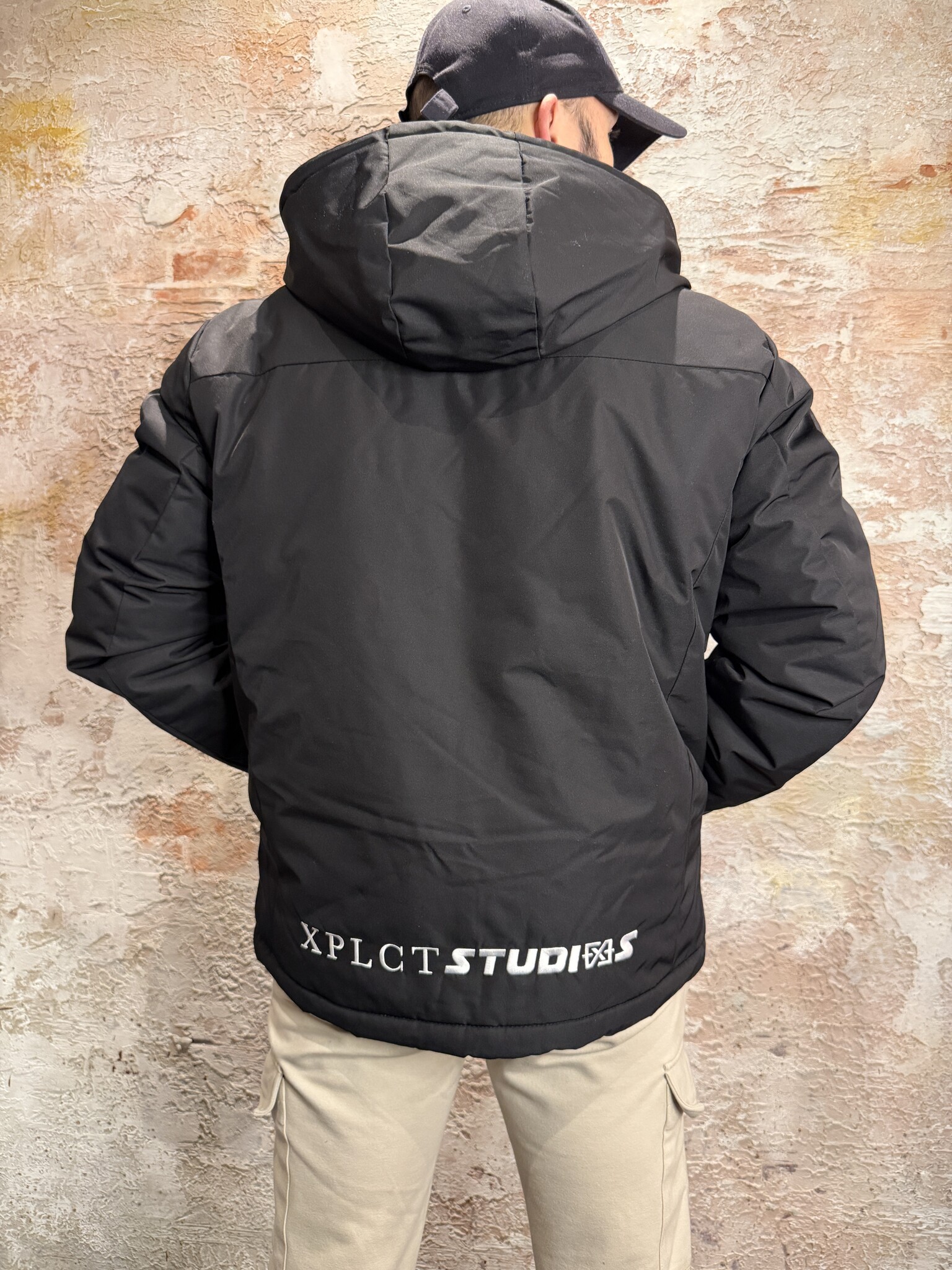XPLCT Frost Winterjacket Black, stoere heren winterjas met gewatteerde voering en capuchon en binnenzak. Wind- en waterafstotend, voorzien van subtiele branding en een comfortabele pasvorm. Perfect voor koude dagen in stijl.